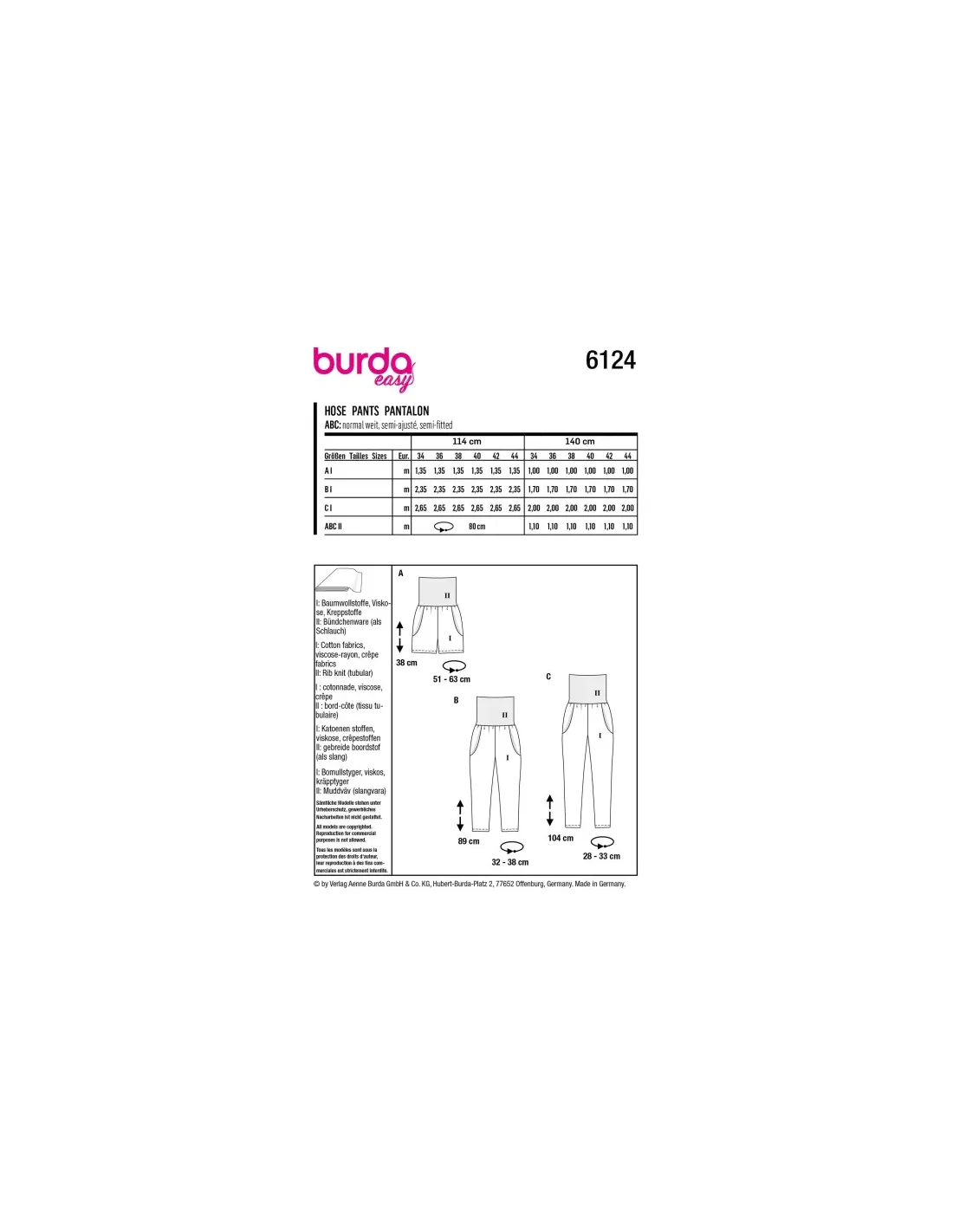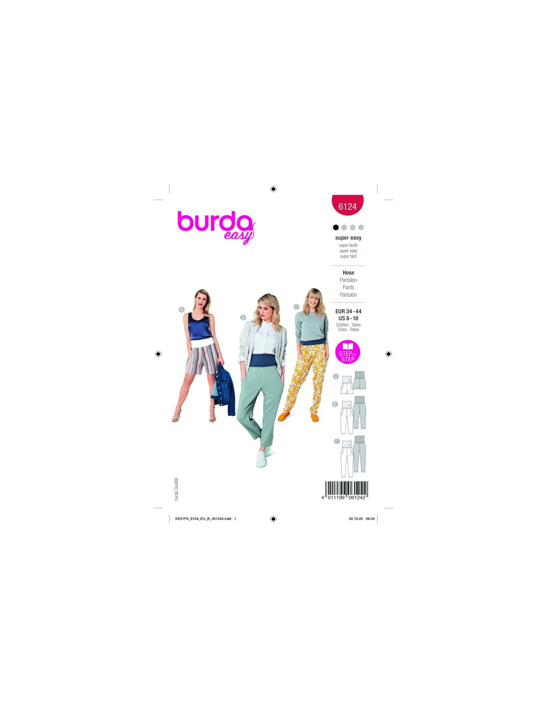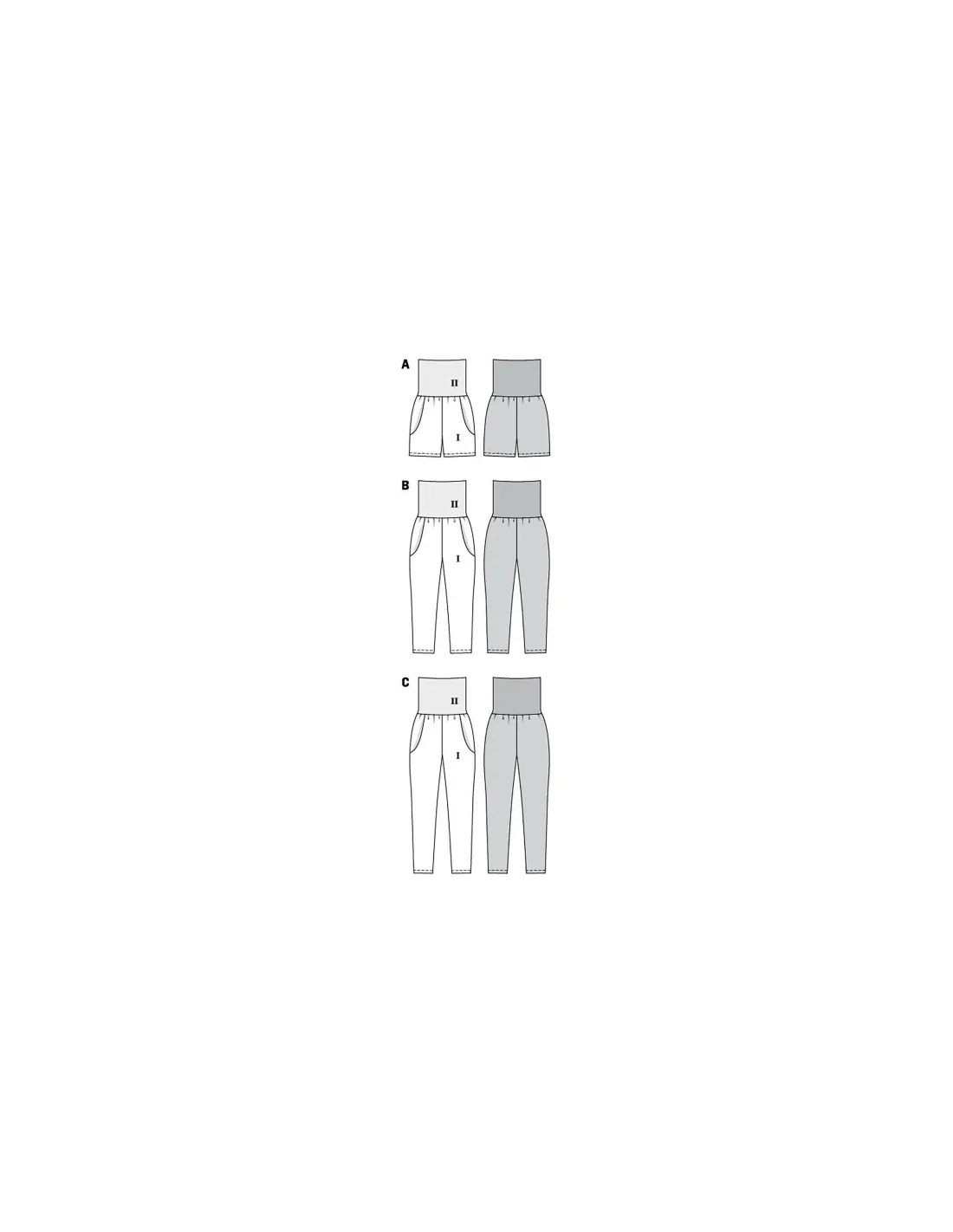 Succès garanti pour ce pantalon, muni d'une large ceinture en bord-côte qui le maintient confortablement à la taille et offre diverses façons de le porter. Cette pièce basique est bien stylée pour le bureau et les loisirs. Confectionnée dans un jersey, elle convient parfaitement pour une séance de yoga. Tissus conseillés: ABC : tissu I : cotonnade, viscose, crêpe, tissu II : bord-côte tubulaireMercerie nécessaire: -
