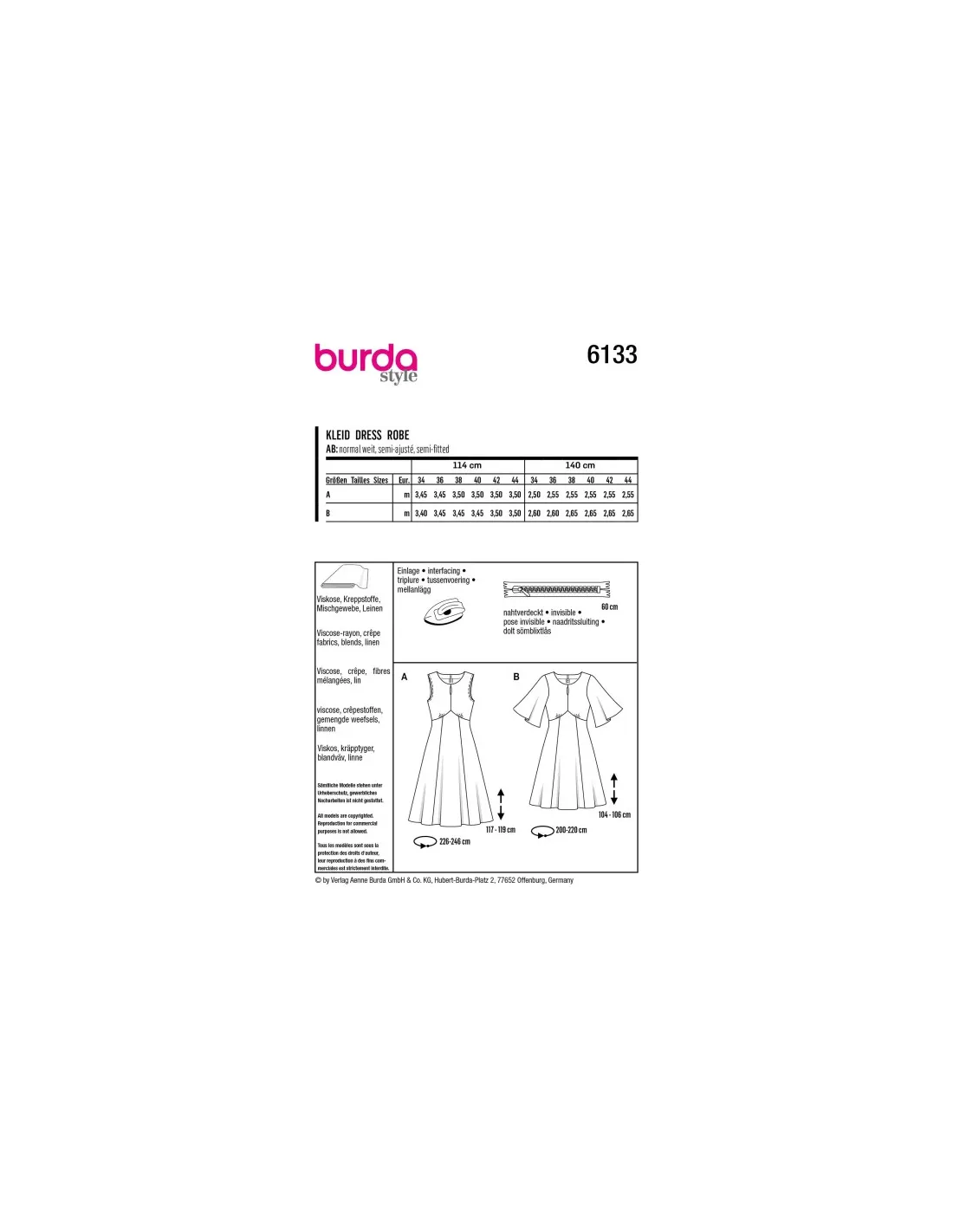 Avec ou sans manches - ces robes stylées composées d'une jupe virevoltante et d'une taille légèrement rehaussée ont du potentiel et peuvent devenir votre pièce favorite. Tissus conseillés: Viscose, crêpe, fibres mélangées, linMercerie nécessaire: AB : entoilage thermocollant, 1 fermeture à glissière invisible de 60 cm