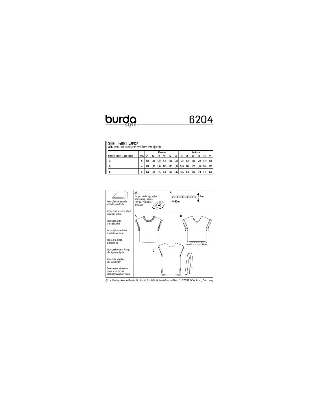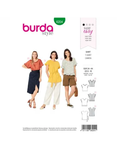 Patron de couture pour confectionner Des blouses ou T-shirts pour l'été dans différentes longueurs, avec des épaules extra-larges, soit ornés d'un galon à pompons, soit avec des volantes. La déclinaison plus longue d ce patron à des fentes latérales pour un joli tombé sur la taille. Pour chacun de ces 3 modèles à coudre, l'encolure en V et ronde de l'autre côté, peuvent se porter aussi bien devant que dans le dos. Pas d'emmanchure à confectionner pour plus de facilité à coudre, les empiècements principaux du buste se terminent en tombé sur les épaules ;) Tailles femme : 34 - 44 EUR (du 36 au 46 FR) Difficulté couture : Super Easy | Rapide & Facile à coudre - spécial débutants Tissus conseillés: Viscose, soie, crêpe, cotonnade légère Mercerie nécessaire : · Modèles A & B : entoilage thermocollant. · Modèle A : 80 à 90 cm de galon, largeur 1 cm. Instructions coutures incluses dans la pochette en Français, English, Deutsch, Español, Nederlands, Italiano, Svenska, Dansk, Pусский · AttentionMarges de couture non incluses sur le patron, prévoir 1 ou 2 cm supplémentaires depuis la ligne de couture et pourtour du patron · · Tous les modèles sont sous la protection des droits d’auteur, leur reproduction à des fins commerciales est strictement interdite ·