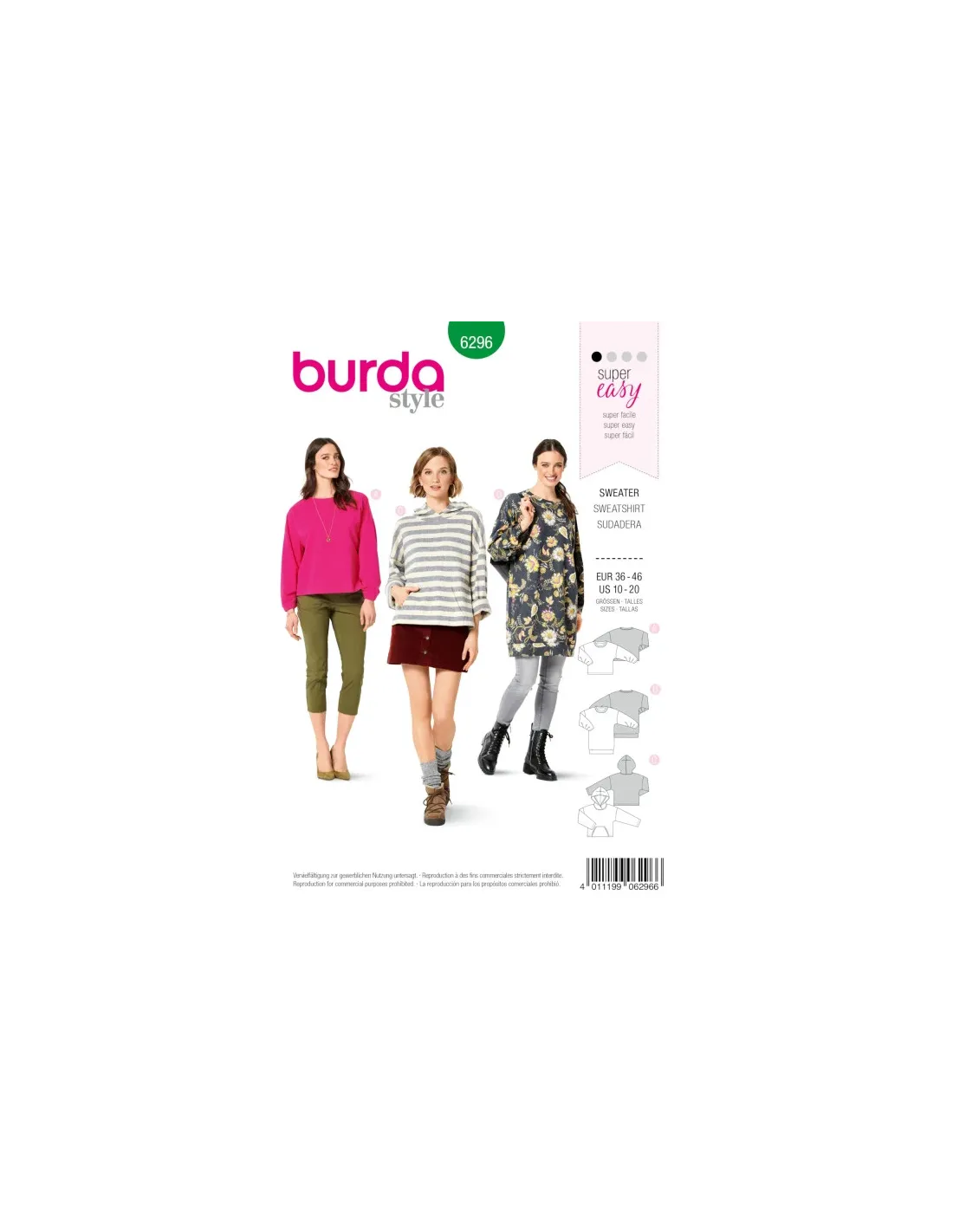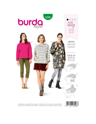Patron Burda 6296 SweaTee-Shirt pour femmes de 36 à 46