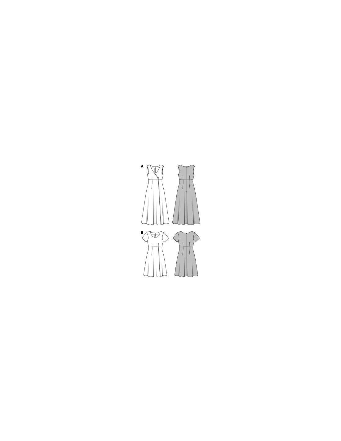Ces deux robes à taille haute et effet cache-cœur sont merveilleusement féminines tout en restant sobres. Choisissez entre deux longueurs, l'encolure ronde et l'encolure en V ainsi qu'entre la version sans manches et celle à manches courtes.