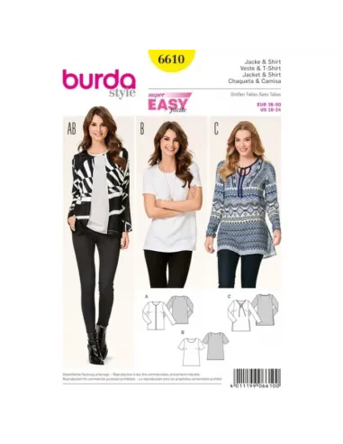 Veste - tee-shirt - tunique - joliment épurésUnis ou imprimés, seuls ou associés, ces modèles séduisent toujours par leur légèreté qui flatte allègrement la silhouette.Tissus conseillés: Viscose, cotonnade, crêpe, lin légerTailles 36 à 50Niveau couture: Super Facile, rapide, idéal pour débutantLangues incluses: Français, Deutsch, English, Español, Nederlands, Italiano,Svenska, Dansk, Pусский