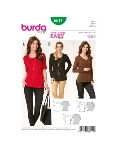 T-shirt - encolure ronde - encolure en VDes tee-shirts simples en jersey, ni trop courts, ni trop serrés, à porter toute l'année - vous n'en aurez jamais assez dans votre garde-robe.Tissus conseillés: n'utilisez que du jersey bi-élastiqueTailles 36 à 50Niveau couture: Super Facile, rapide, idéal pour débutantLangues incluses: Français, Deutsch, English, Español, Nederlands, Italiano,Svenska, Dansk, Pусский