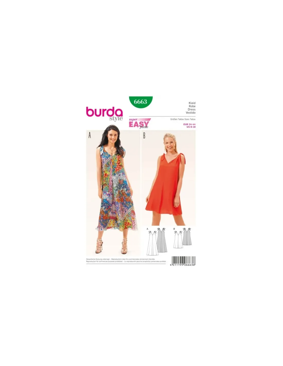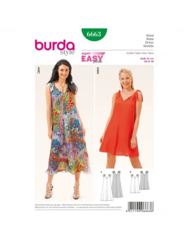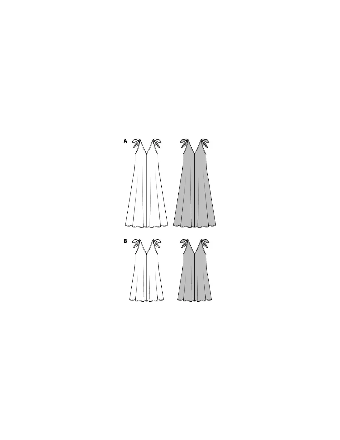 Merveilleusement aérienne et simplement nouée sur les épaules, la robe à bretelles dévoile un profond décolleté en V non seulement sur le devant mais aussi dans le dos. Les quatre pièces évasées sont vite assemblées et peuvent sortir dans la foulée.