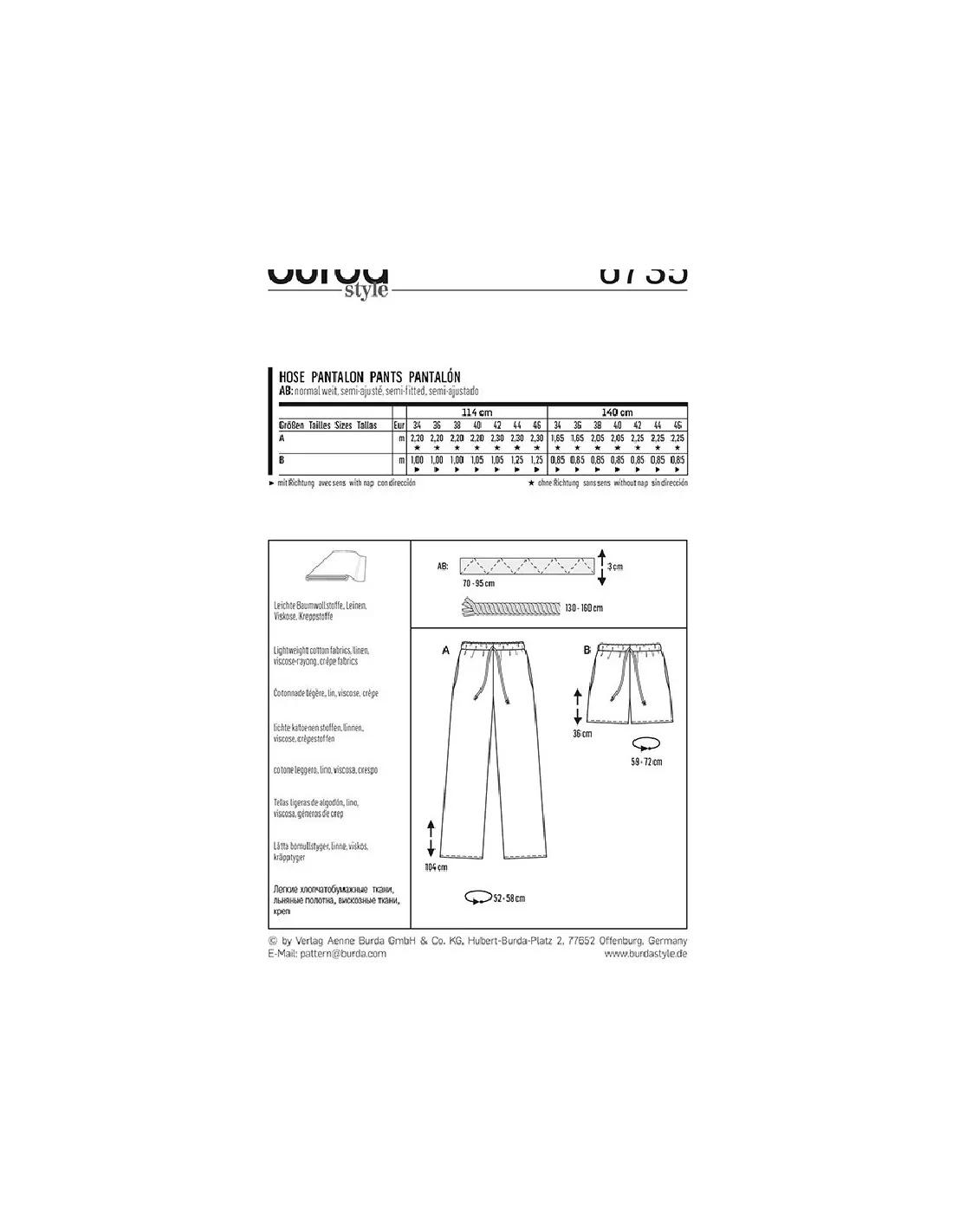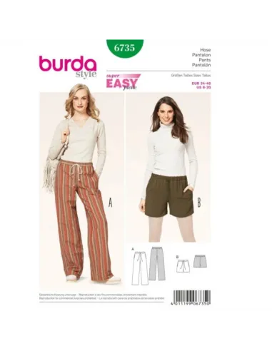 Pantalon - cordon sous coulisseFaites vous-même ce pantalon super confortable. La taille coulissée est dotée d'un cordon de serrage et les poches se font discrètes dans les coutures latérales. Vous pouvez aussi choisir la longueur, l'étoffe, la couleur et le motif du pantalon et concrétiser directement vos désirs. Tailles femme 34 à 46 (US 8-20)Niveau couture: Super Facile, rapide, idéal pour débutantTissus conseillés:lainage léger, lin, viscose, crêpeLangues incluses: Français, Deutsch, English, Español, Nederlands, Italiano,Svenska, Dansk, Pусский