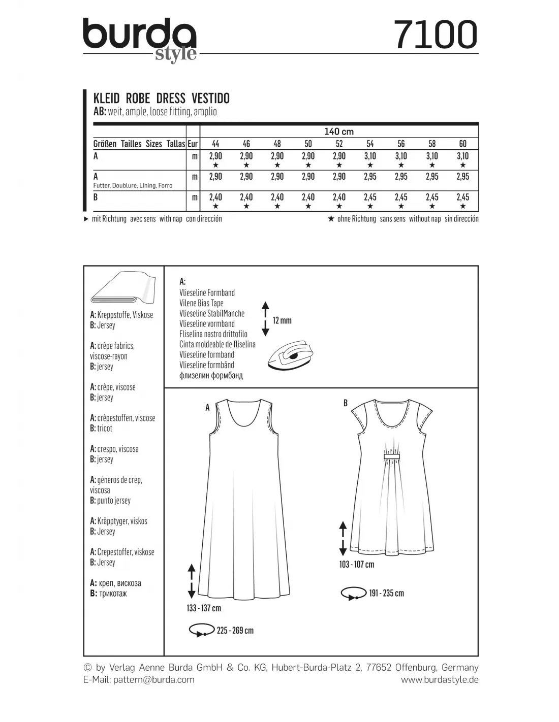 Robe femme ample. Tissus légers ou jersey aux motifs enjoués ou en uni. Ces robes estivales aériennes vous laissent l'embarras du choix. Elles sont soit longues au sol et sans manches ou alors recouvrent le genou, à petites manches ou sans manches, avec un joli fronçage sur le devant et le dos pour la plus courte. Une pièce unique chacune ! Tailles: 44-60 (US 18-34). Niveau de couture: facile. Tissus conseillés: crêpe, viscose, jersey. Langues incluses: Français, Deutsch, English, Español, Nederlands, Italiano, Svenska, Dansk, Pусский.