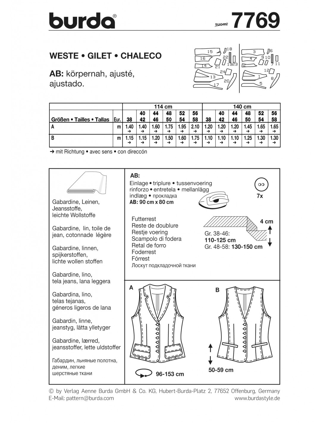 Gilet femmeLe gilet mode du moment à pinces et découpes épouse la silhouette, il est le chouchou des défilés de mode. On porte ce gilet à même la peau, mais vous pouvez également le porter avec un chemisier ou un shirt. Vous pouvez réaliser ce modèle en lui ajoutant un col et des poches appliquées ou une encolure en V et des poches passepoilées.Tailles femme: 38 à 58 (US 12-32)Niveau couture: moyen, intermédiaireTissus conseillés: Gabardine, lin, toile de jean, lainages légers .Langues incluses: Français, Deutsch, English, Español, Nederlands, Italiano, Svenska, Dansk, Pусский.