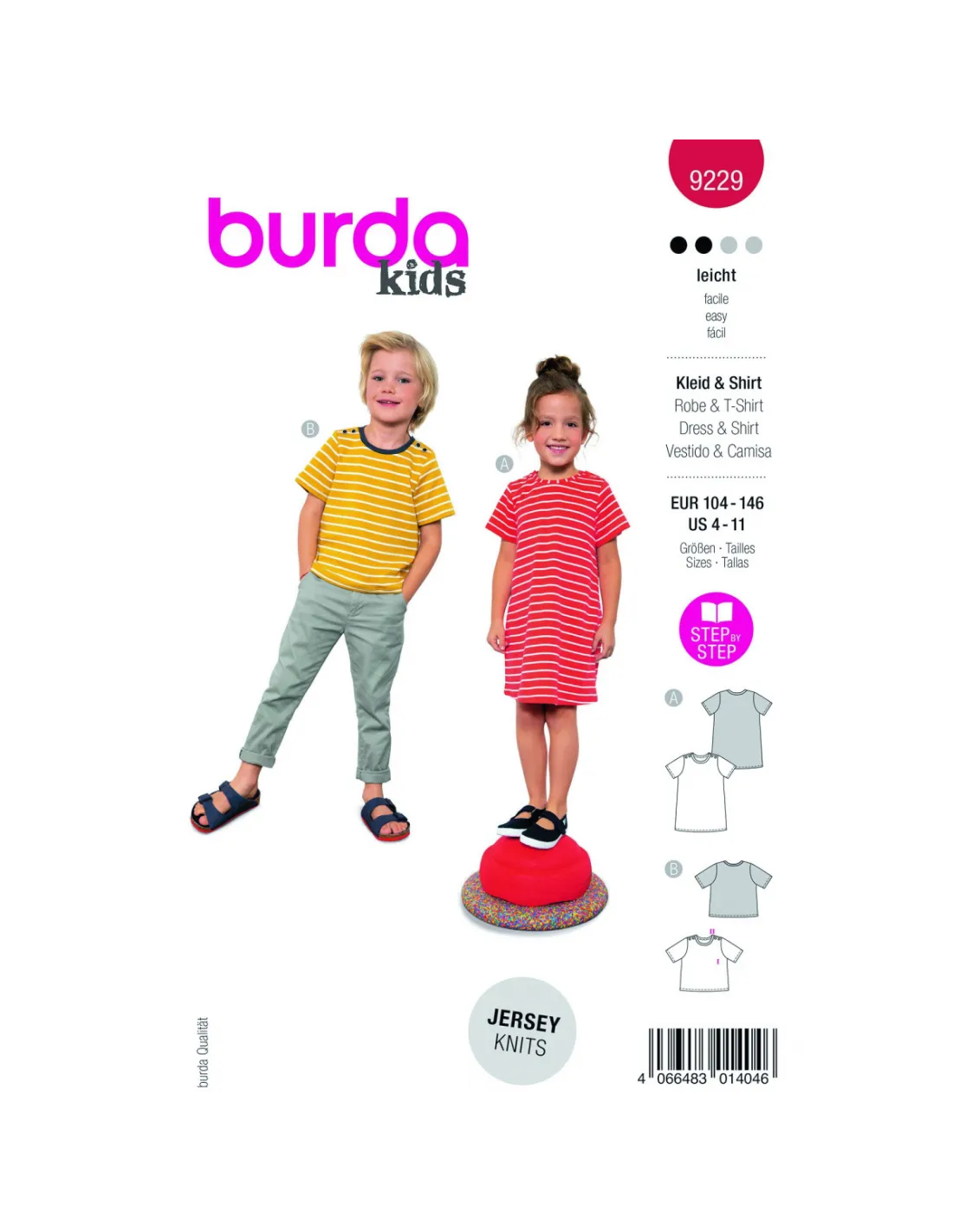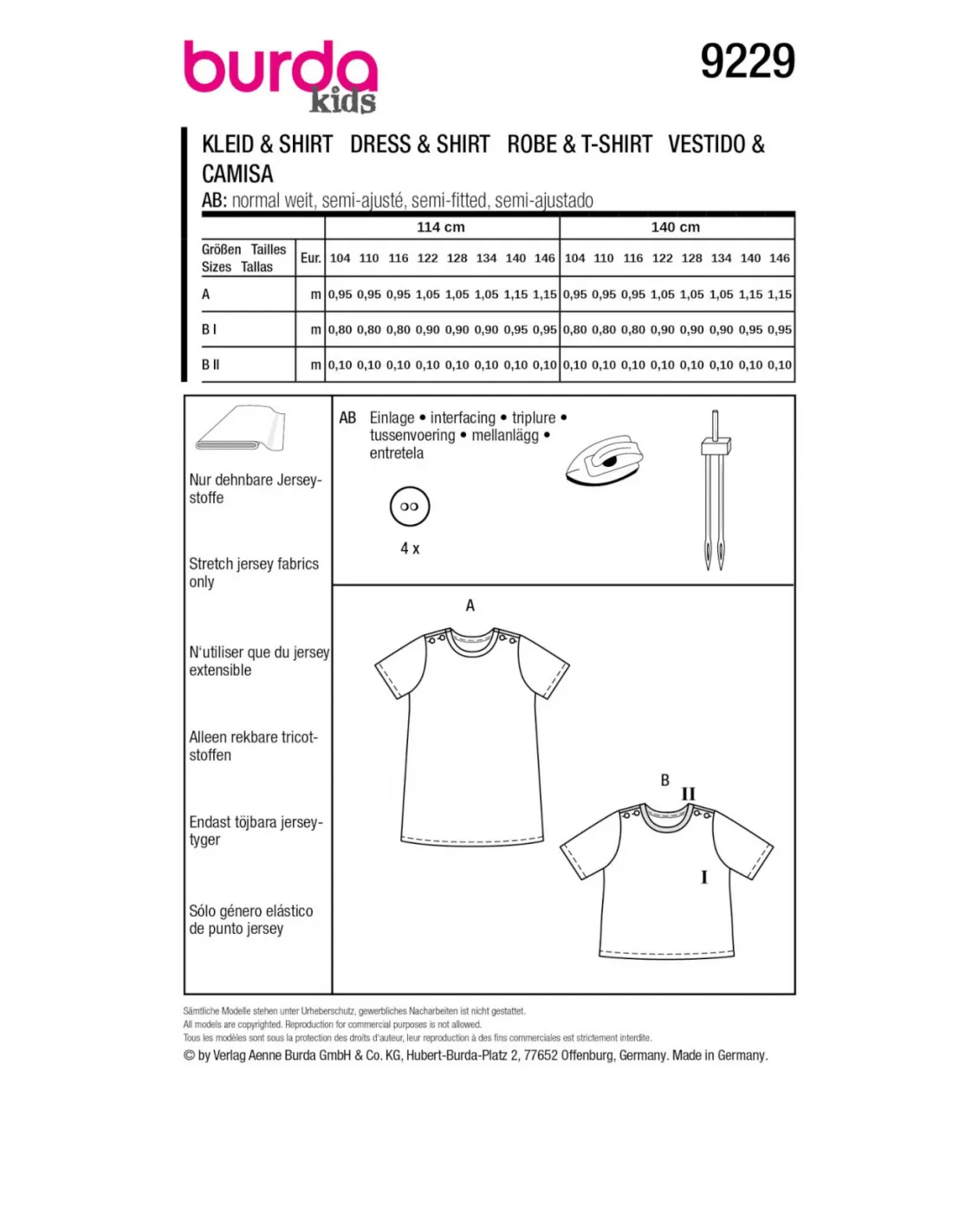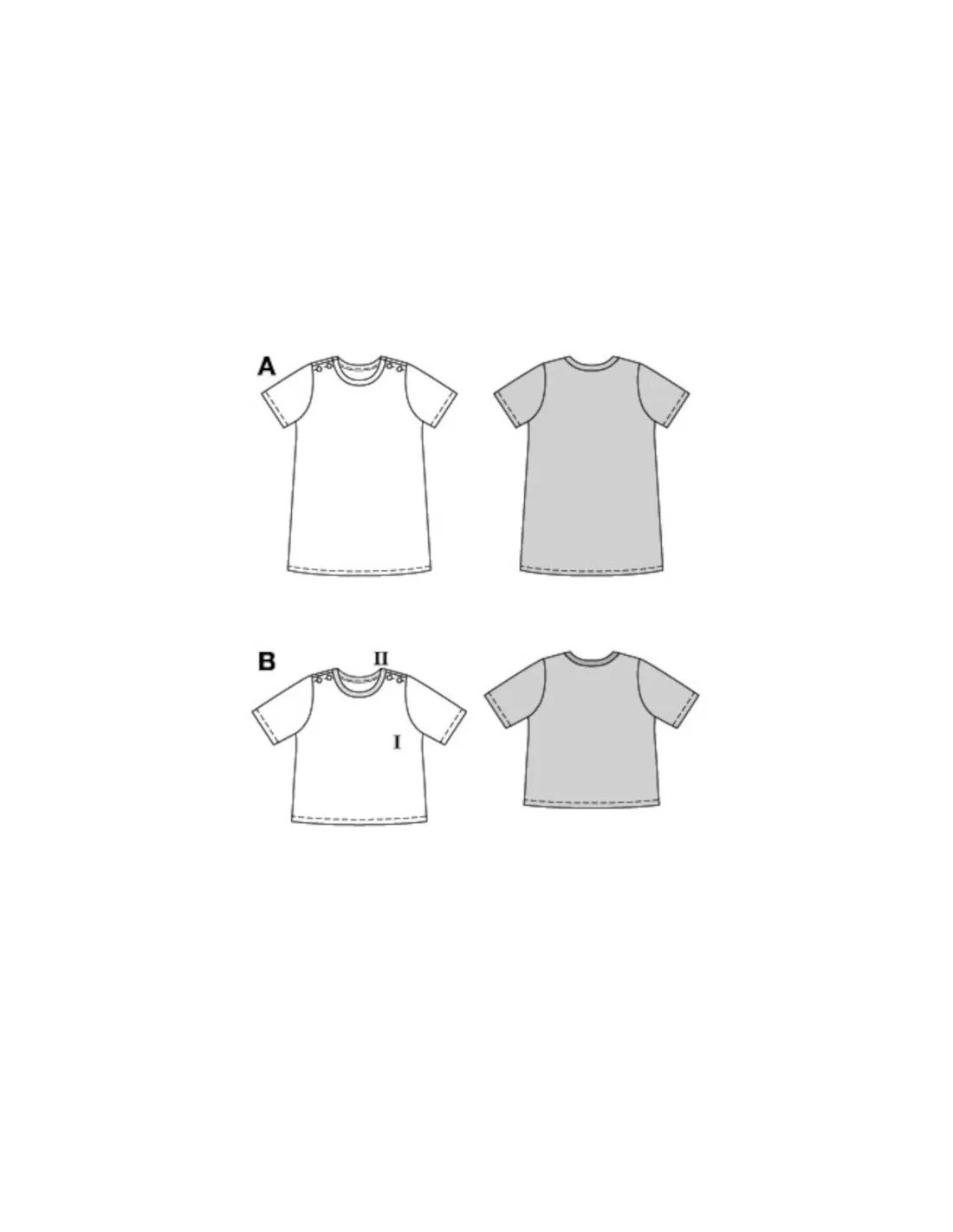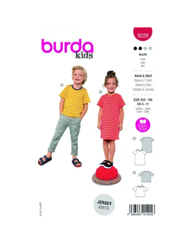 La robe préférée de l'été, il suffit de l'enfiler et le tour est joué - parfaite pour les matins agités. Les boutons s'ouvrent des deux côtés pour laisser passer la tête. Le t-shirt décontracté est un excellent basique pour les enfants. L'encolure de couleur contrastée attire particulièrement l'attention. Avec un t-shirt long en dessous, le t-shirt d'été devient un haut d'hiver. Deux patrons polyvalents dans un seul set, le tout au niveau 2 de la couture ! Tissus recommandés: Uniquement des tissus jersey extensibles. Mercerie nécessaire: AB : entoilage, bouton, aiguille jumelée