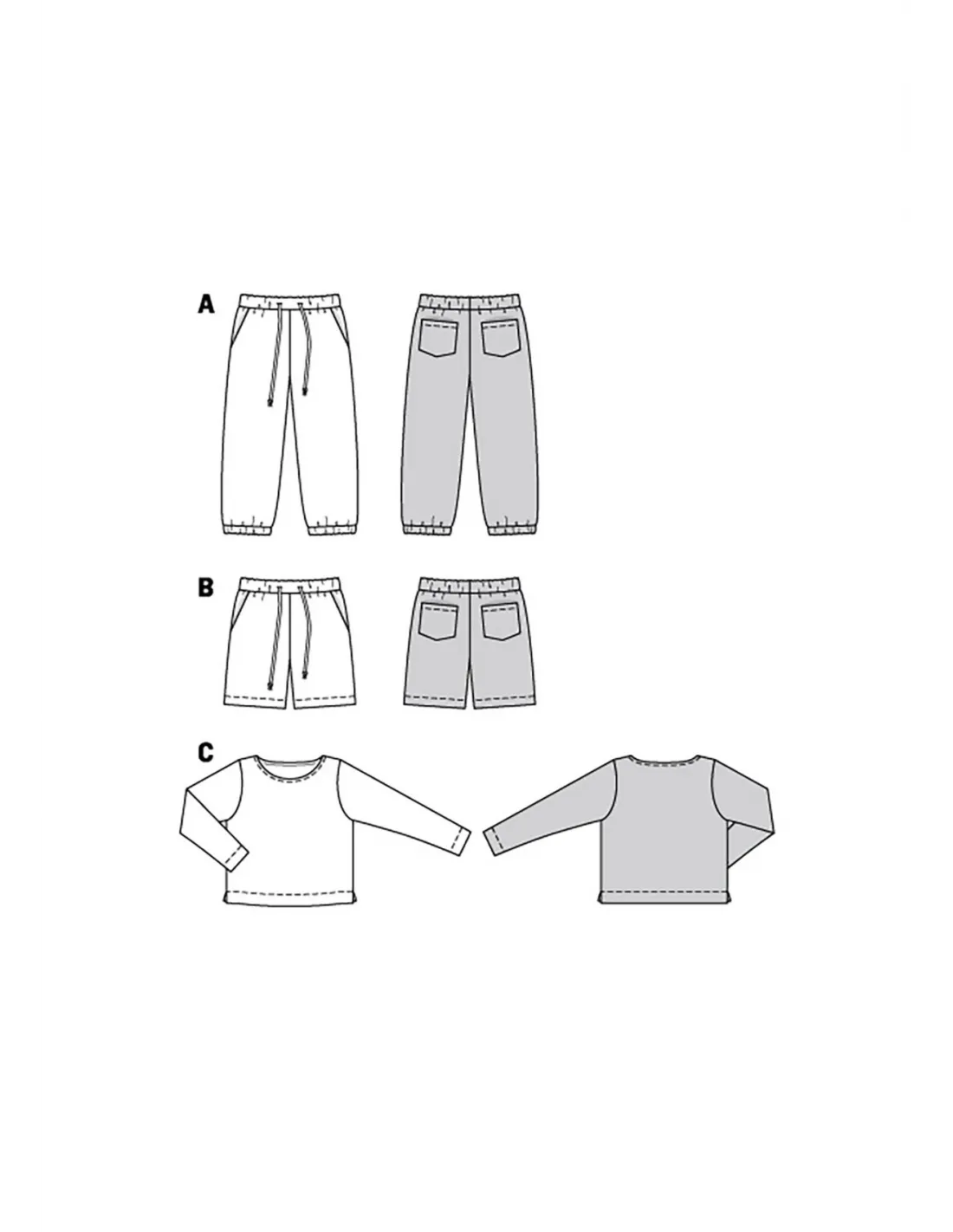 Vite enfilés, ce pantalon et ce short à coulisse élastiquée, avec un cordon et des poches pratiques, sont indispensables au quotidien. Avec le tee-shirt épuré d'une ampleur confortable, ils créent une tenue décontractée. On coud immédiatement plusieurs pièces pour les combiner ensemble.