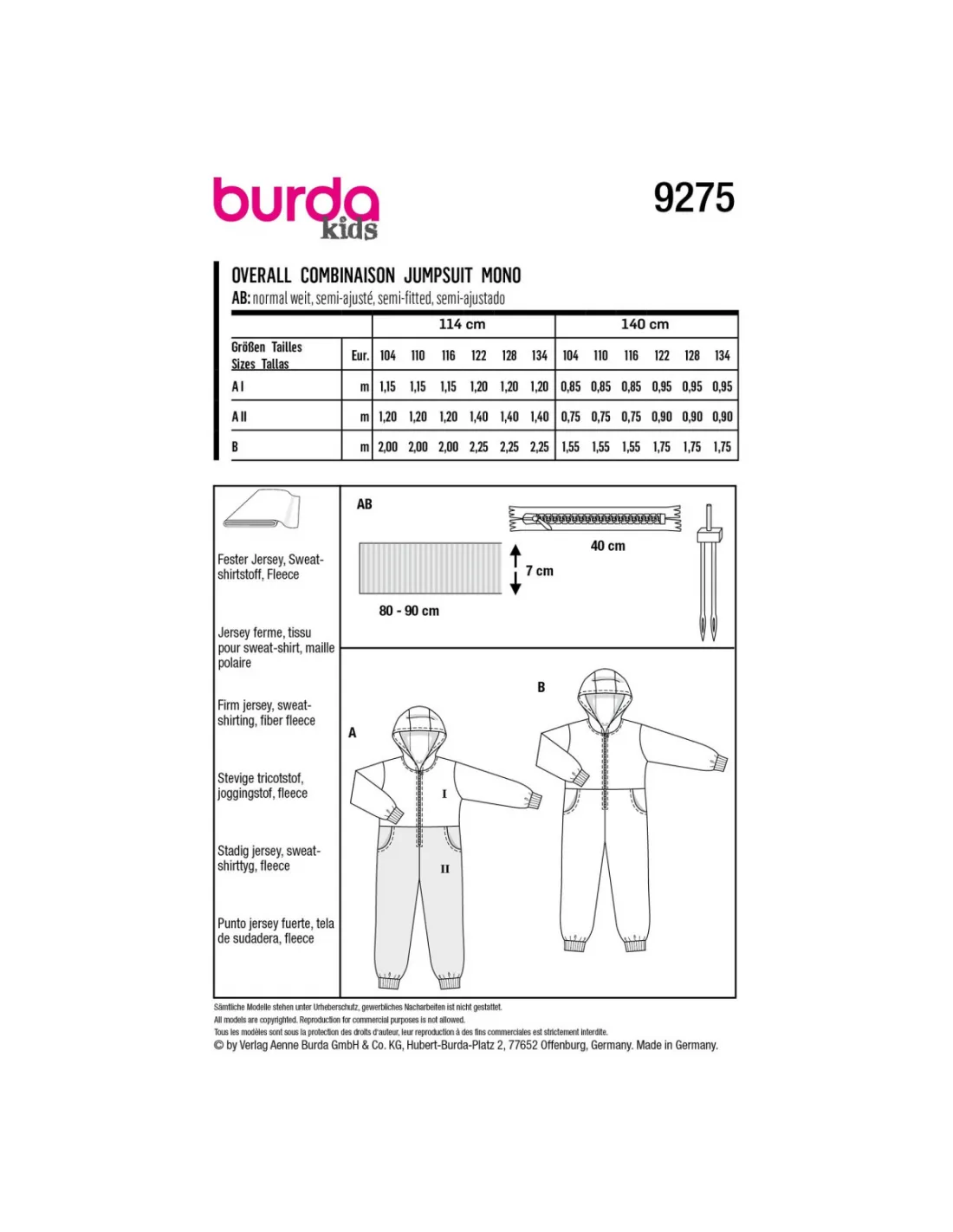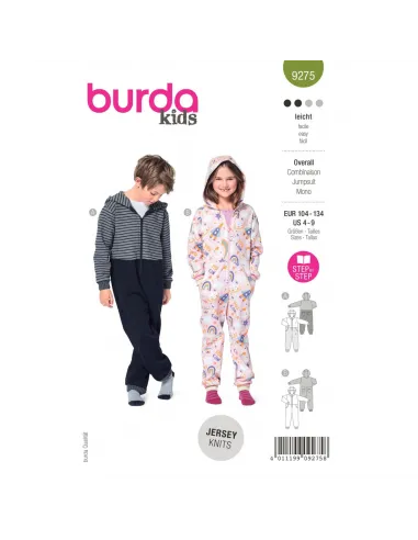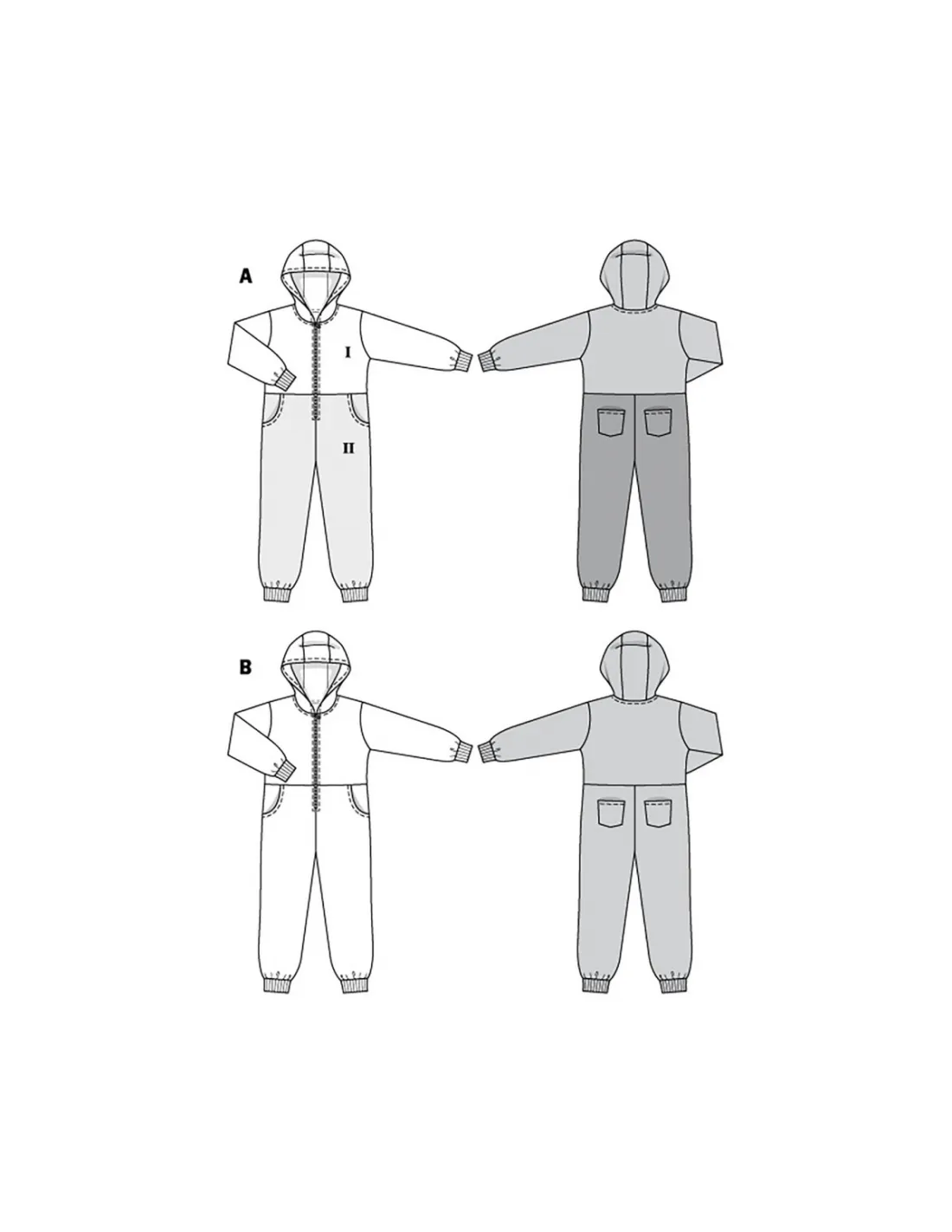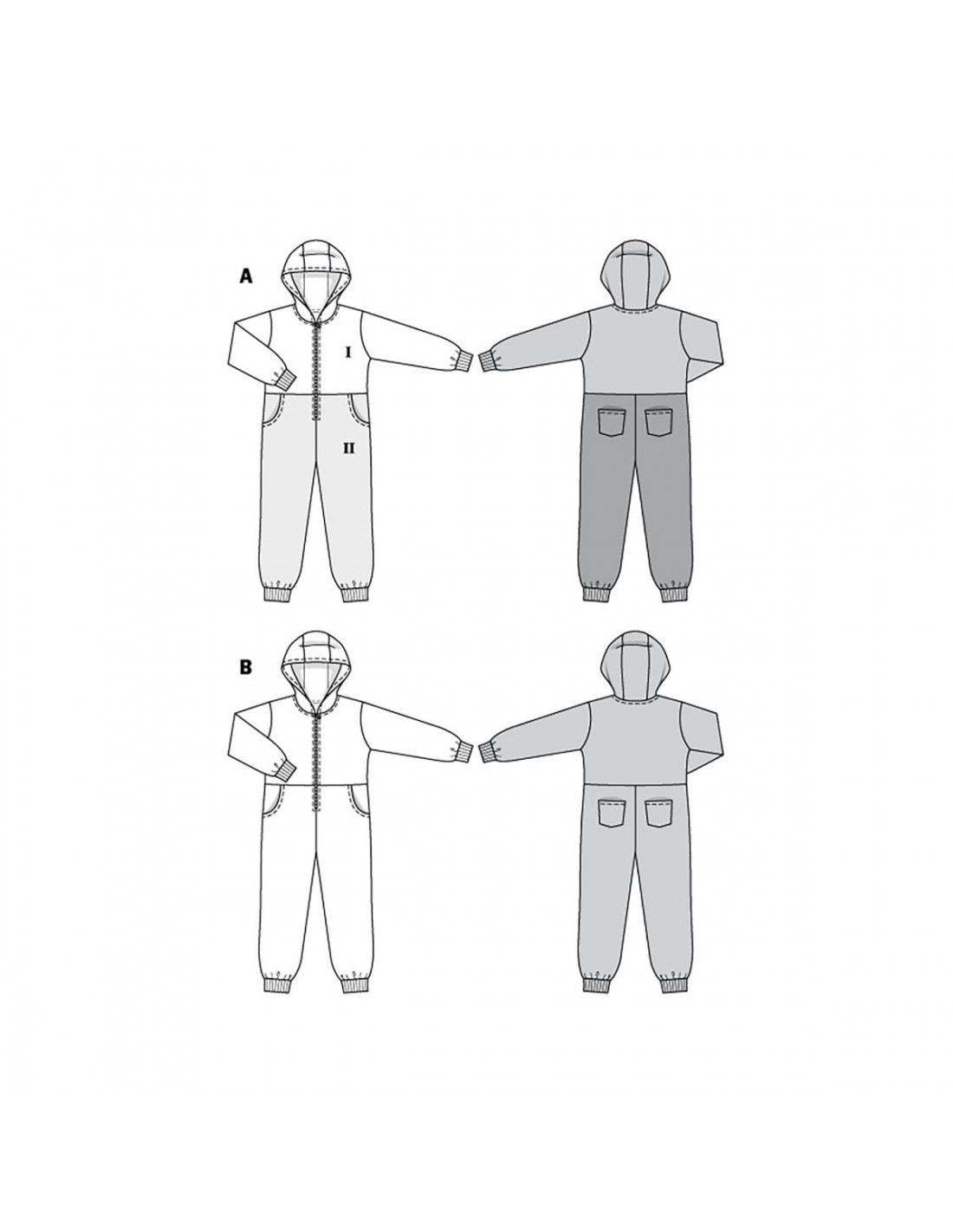 Les filles et les garçons sont toujours impeccables dans cette grenouillère dont l'ampleur garantit une totale liberté de mouvement. Très pratiques, les poches sont incontournables pour ranger les trésors des enfants. Enfiler la grenouillère, munie d'une fermeture à glissière, devient un jeu d'enfant. Tissus conseillés: Jersey ferme, tissu pour sweat-shirt, maille polaireMercerie nécessaire: AB : 1 fermeture à glissière de 40 cm, bord-côte, largeur 7 cm : 80 - 90 cm, aiguille jumelée
