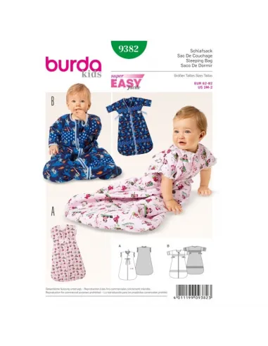 Gigoteuse - Turbulette - Nid d'Ange pour bébé Une gigoteuse moelleuse en deux versions qui laisse beaucoup de liberté aux jambes. Une longue fermeture à glissière facilite le couchage de l'enfant. La version A, parée de liens à nouer et volants, se passe de manches. La gigoteuse B avec des manches, bords gansés et parements de couleur contrastante, se resserre sur les côtés avec des pattes. Tailles bébé: 62 à 92cm (3 à 24 mois)Niveau couture: Super Facile, rapide, idéal débutantLangues incluses: Français, Deutsch, English, Español, Nederlands, Italiano, Svenska, Dansk, Pусский.