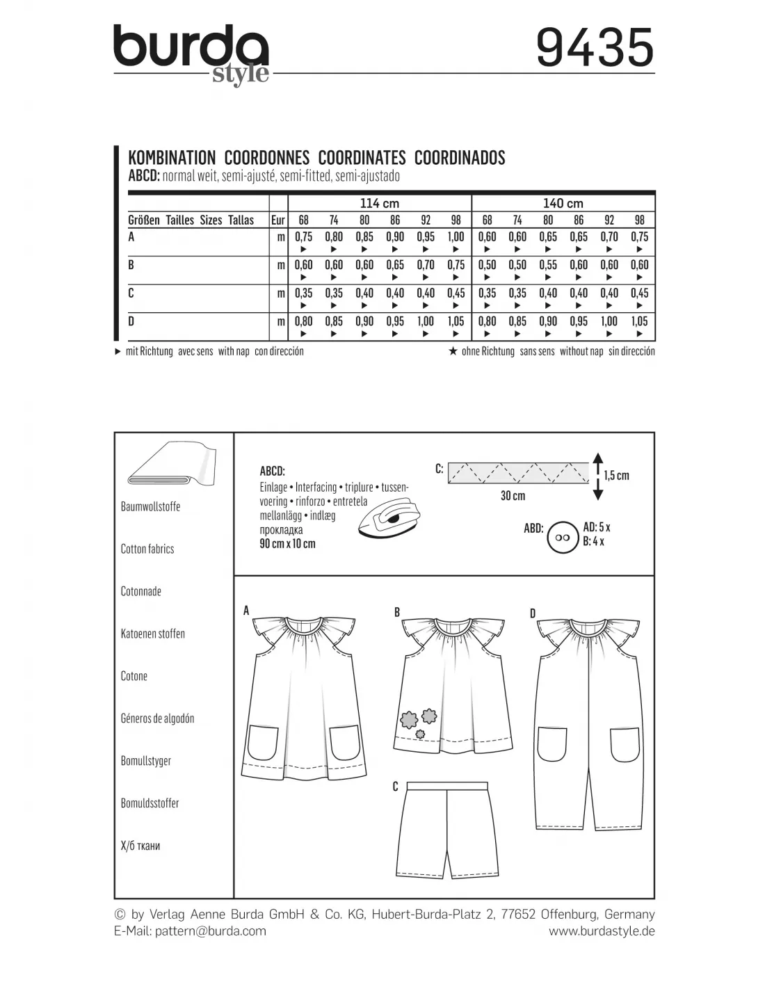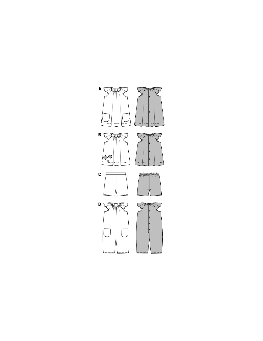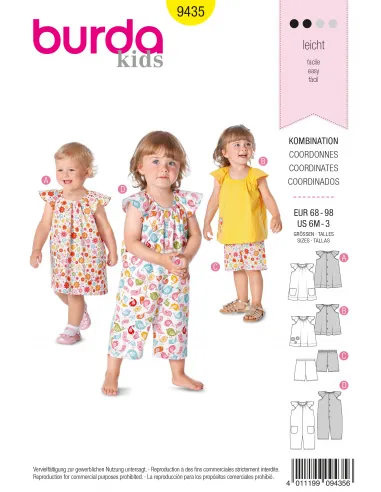 Coordonnés semi ajustés enfant Tailles: 68 - 98cm (6 mois à 3 ans)Niveau de couture: facile. Tissus conseillés: tissus en coton. Langues incluses: Français, Deutsch, English, Español, Nederlands, Italiano, Svenska, Dansk, Pусский.