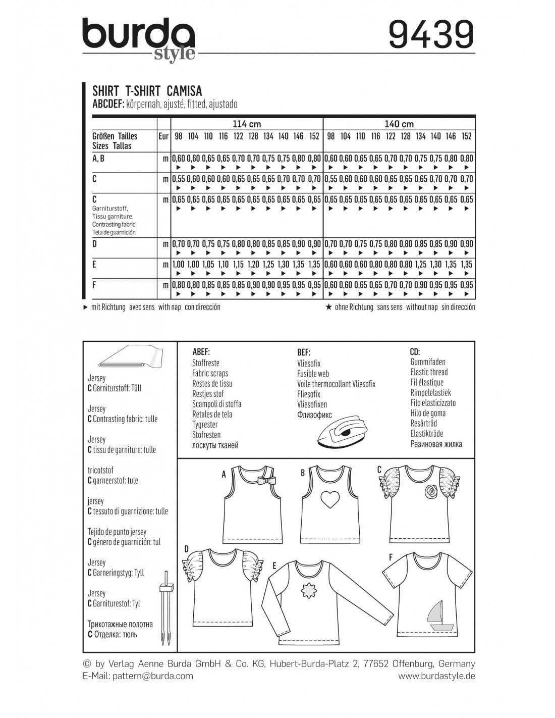 T-shirt enfant Tailles: 98 - 152cm (3 ans - 12 ans)Niveau de couture: super facile - idéal pour commencerTissus conseillés: jersey, C tissu garniture: tulle. Langues incluses: Français, Deutsch, English, Español, Nederlands, Italiano, Svenska, Dansk, Pусский.