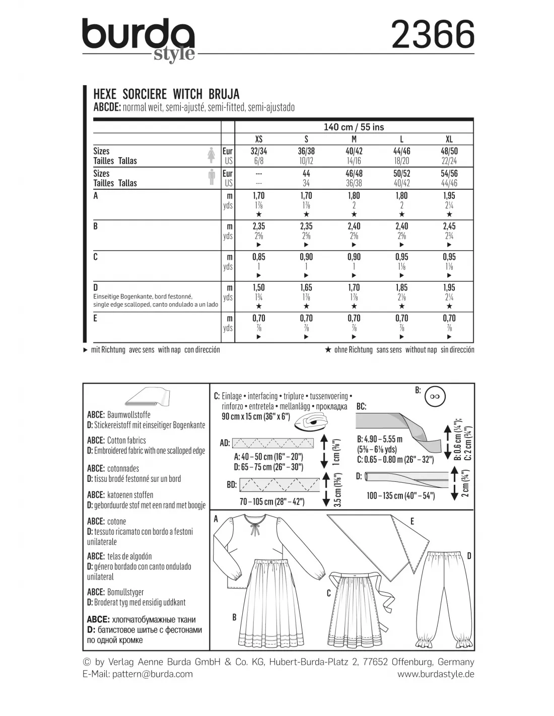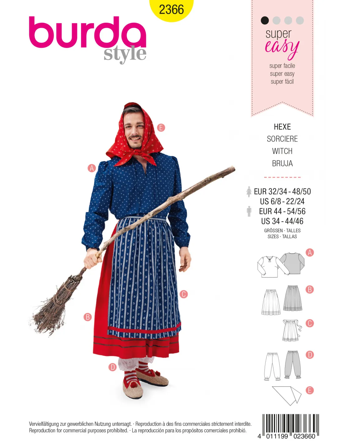 Patron Burda Carnaval 2366 - Déguisement Sorcière Adulte Mixte