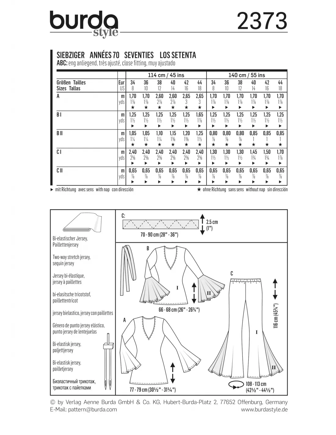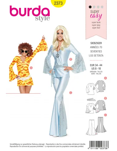 Patron Burda Carnaval 2373 - Déguisement année 70 Femme