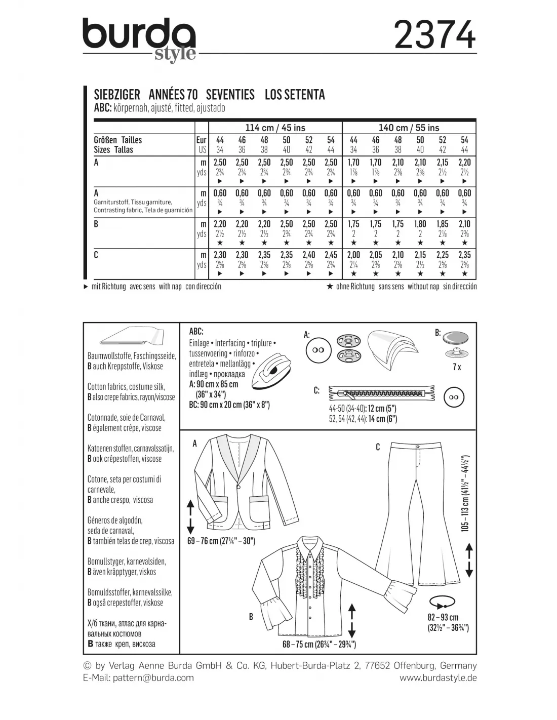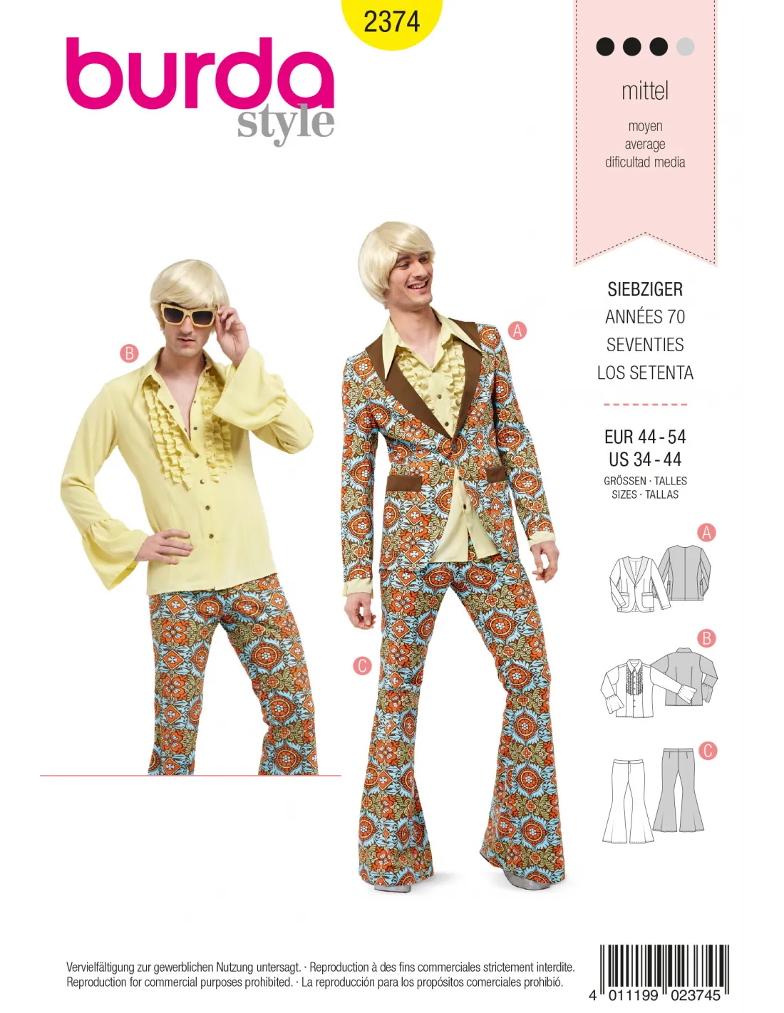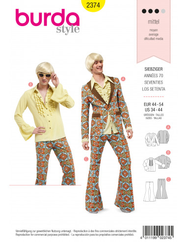 Patron Burda Carnaval 2374 - Déguisement Années 70 Homme