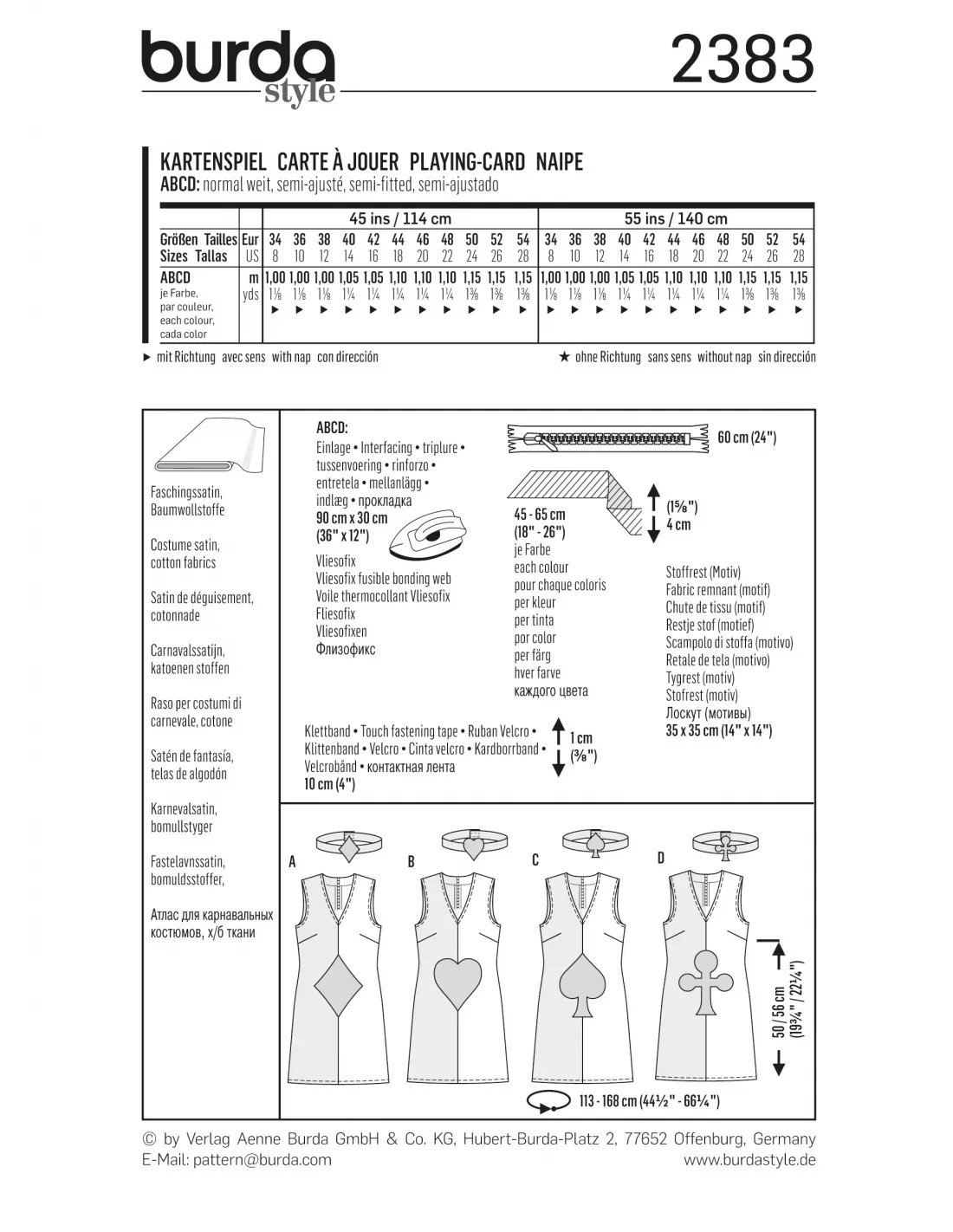 Patron Burda Carnaval 2383 - Déguisement Carte à jouer Femme