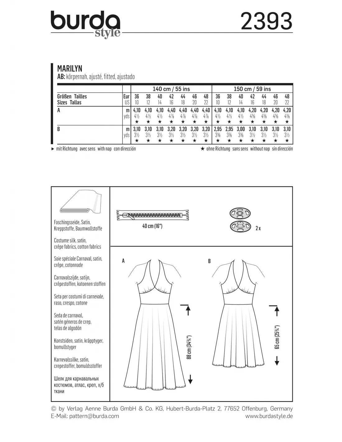 MarilynTailles 36 à 48Niveau couture: facileLangues incluses: Français, Deutsch, English, Español, Nederlands, Italiano,Svenska, Dansk, Pусский