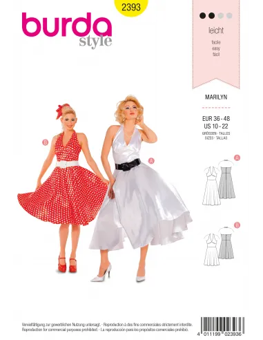 Patron Burda Carnaval 2393 - Déguisement Marilyn Femme