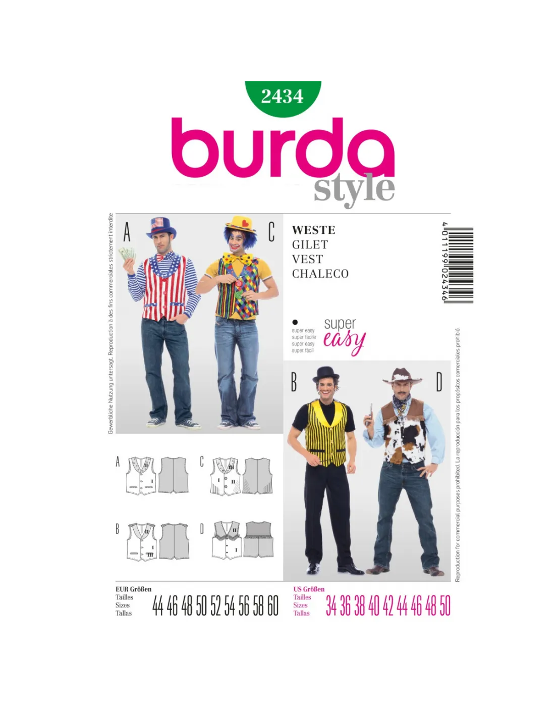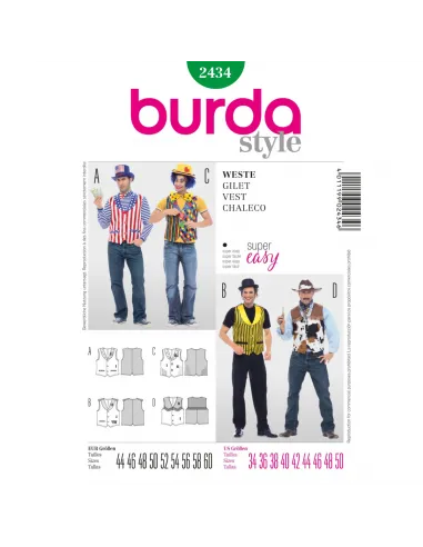 Patron Burda Carnaval 2434 - Déguisement Gilets Homme