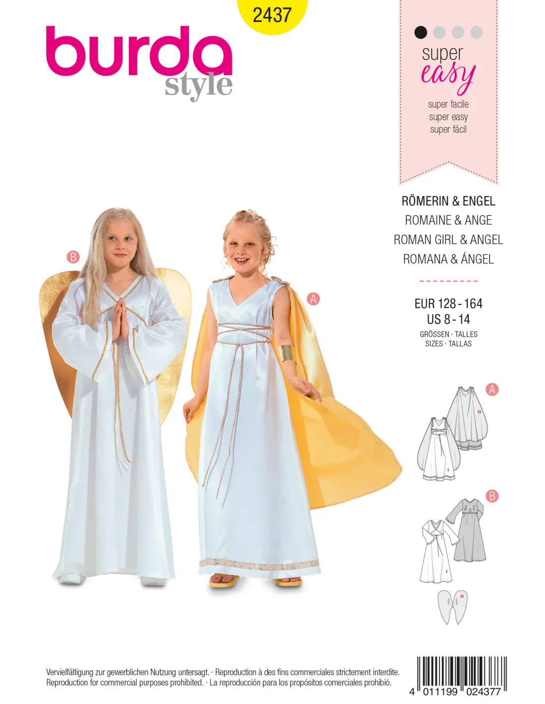Patron Burda Carnaval 2437 - Déguisement Dame romaine et Ange enfant