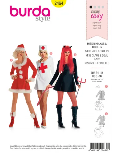 Patron Burda Carnaval 2464 - Déguisement Mère Noël, Diablesse, Infirmière Femme