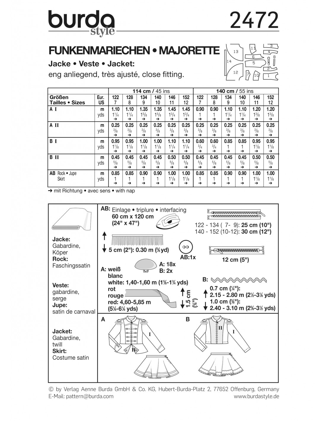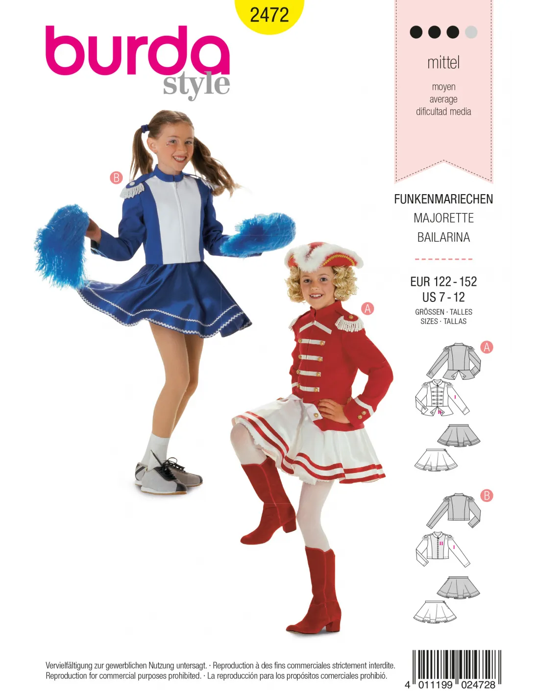 Patron Burda Carnaval 2472 - Déguisement Majorette enfant