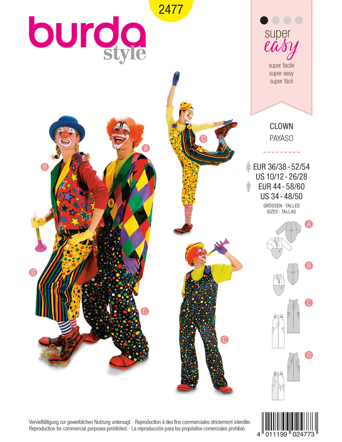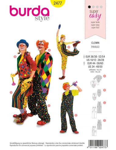 Patron Burda Carnaval 2477 - Déguisement Clown Adulte Mixte