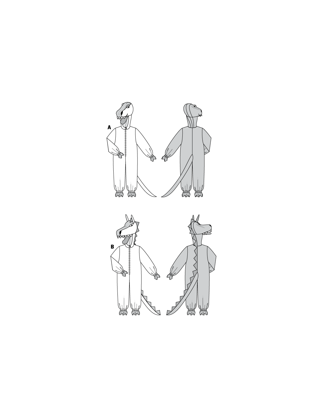 Burda CarnavalCombinaison particulièrement ample dont le capuchon définit l'animal: dinosaure ou dragon. Tissus conseillés: peluche, laine polaire tissu de garniture: feutrineNiveau couture: moyen Tailles 98, 104, 110, 116, 122, 128 (3 à 8 ans)Langues incluses: Français, Deutsch, English, Español, Nederlands, Italiano,Svenska, Dansk, Pусский