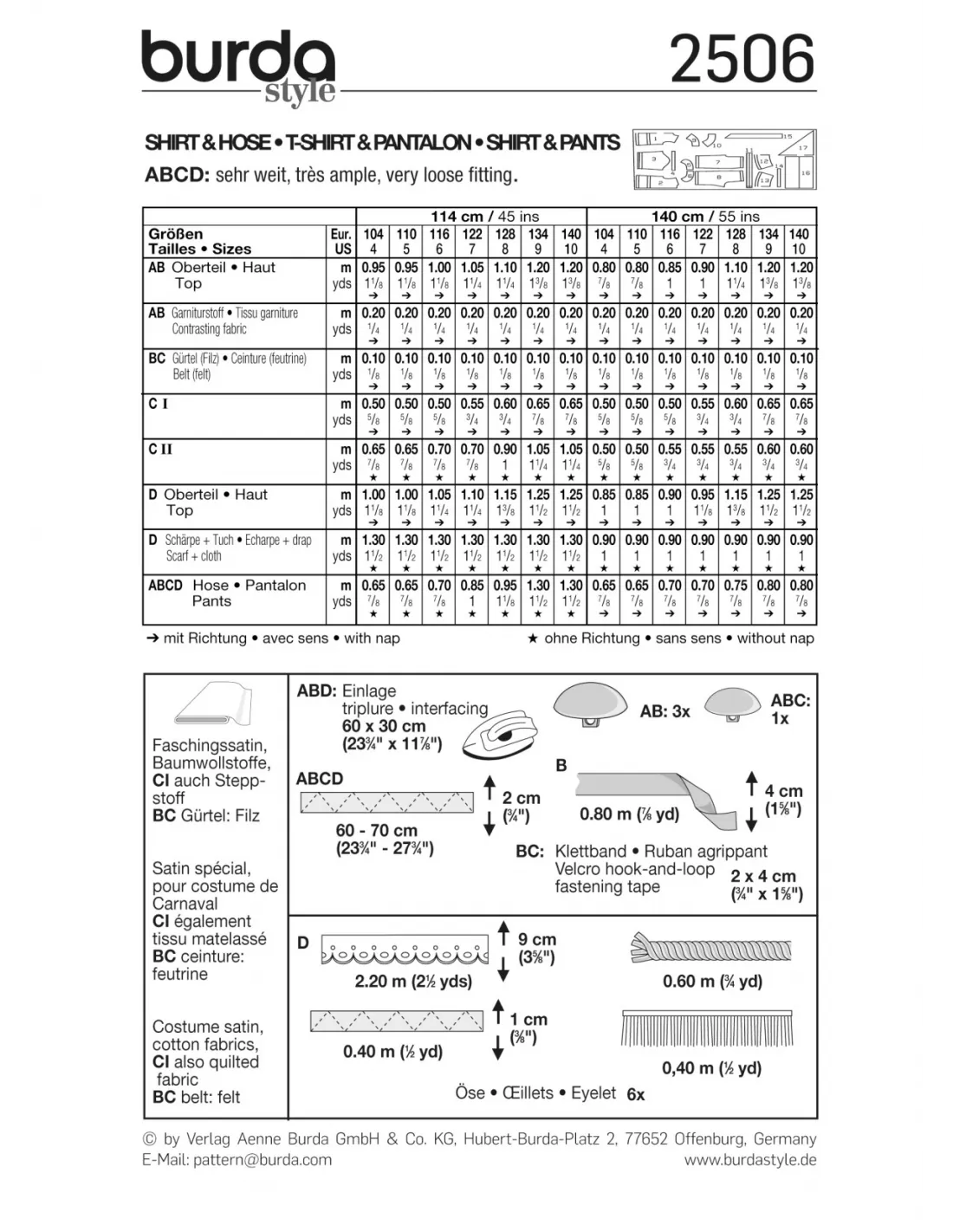 Patron Burda Carnaval 2506 - Déguisement Tunique et pantalon enfant