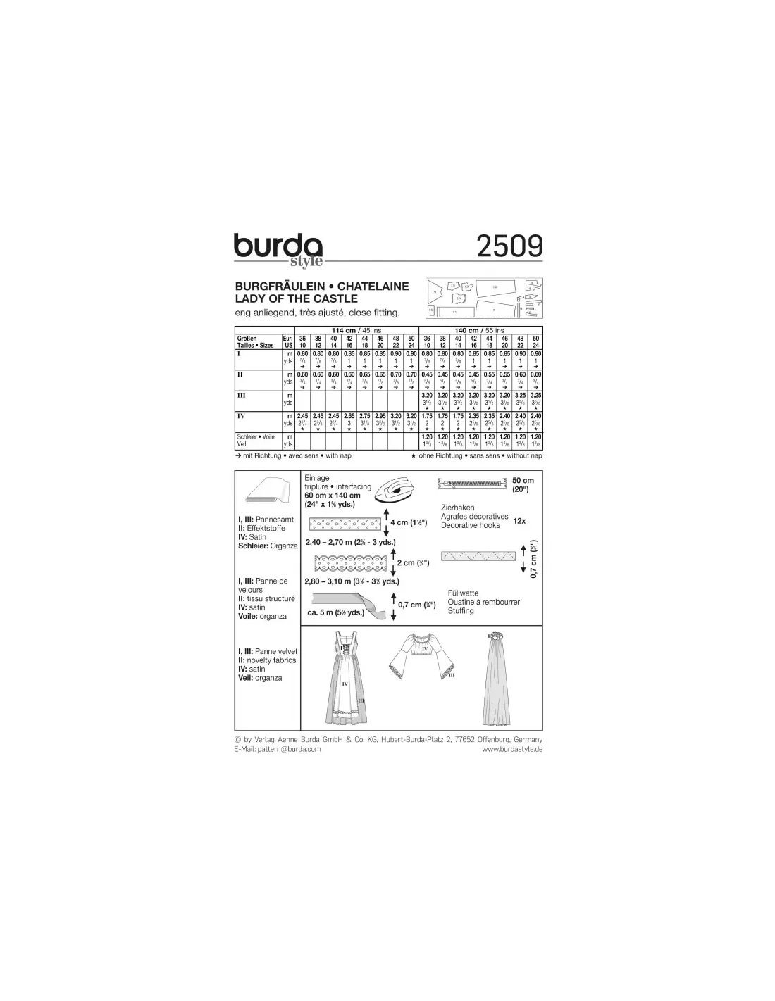 Patron Burda Carnaval 2509 - Déguisement Historique Châtelaine Femme