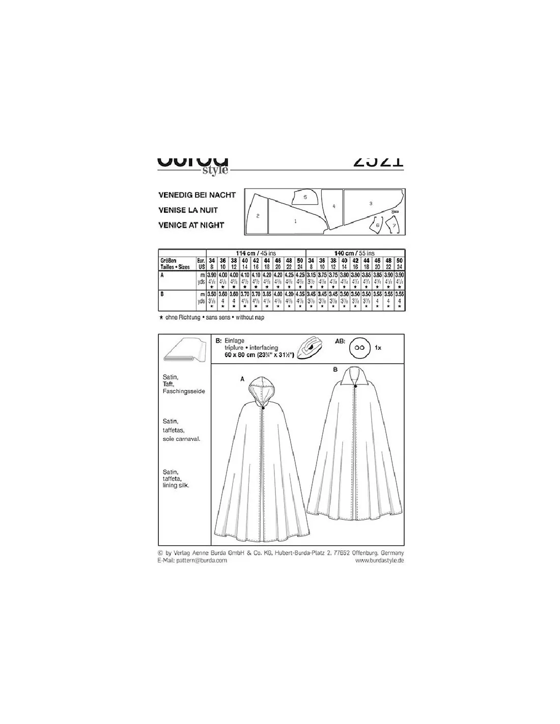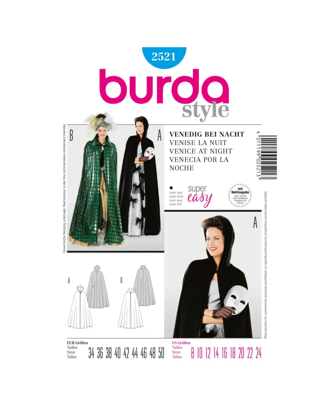 Patron Burda Carnaval 2521 - Déguisement Cape Vénitienne Femme