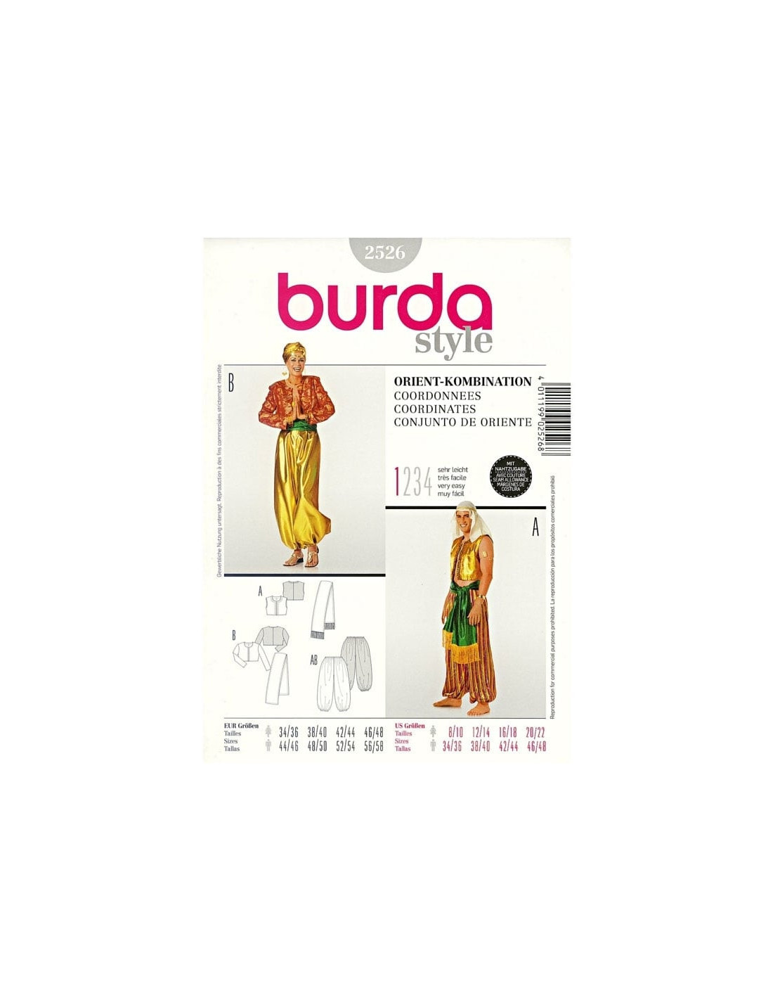 Patron Burda Carnaval 2526 - Déguisement Costumes orientaux Adultes Mixte