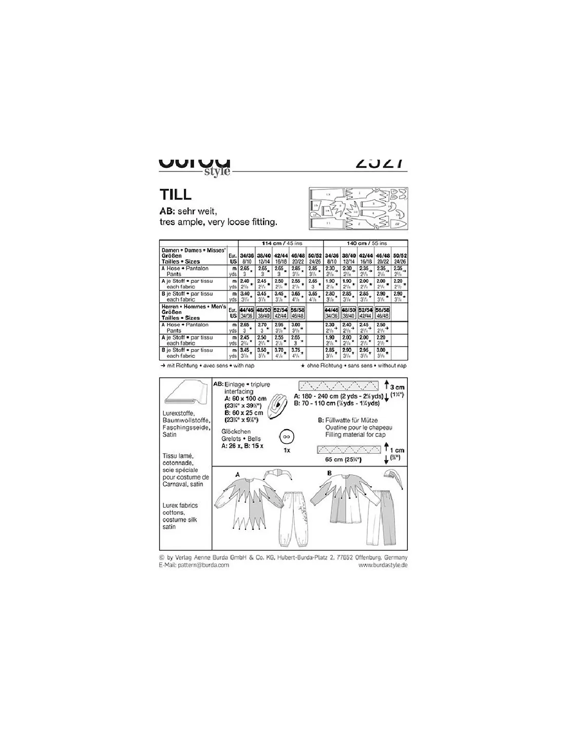 Patron Burda Carnaval 2527 - Déguisement Arlequin Adulte Mixte