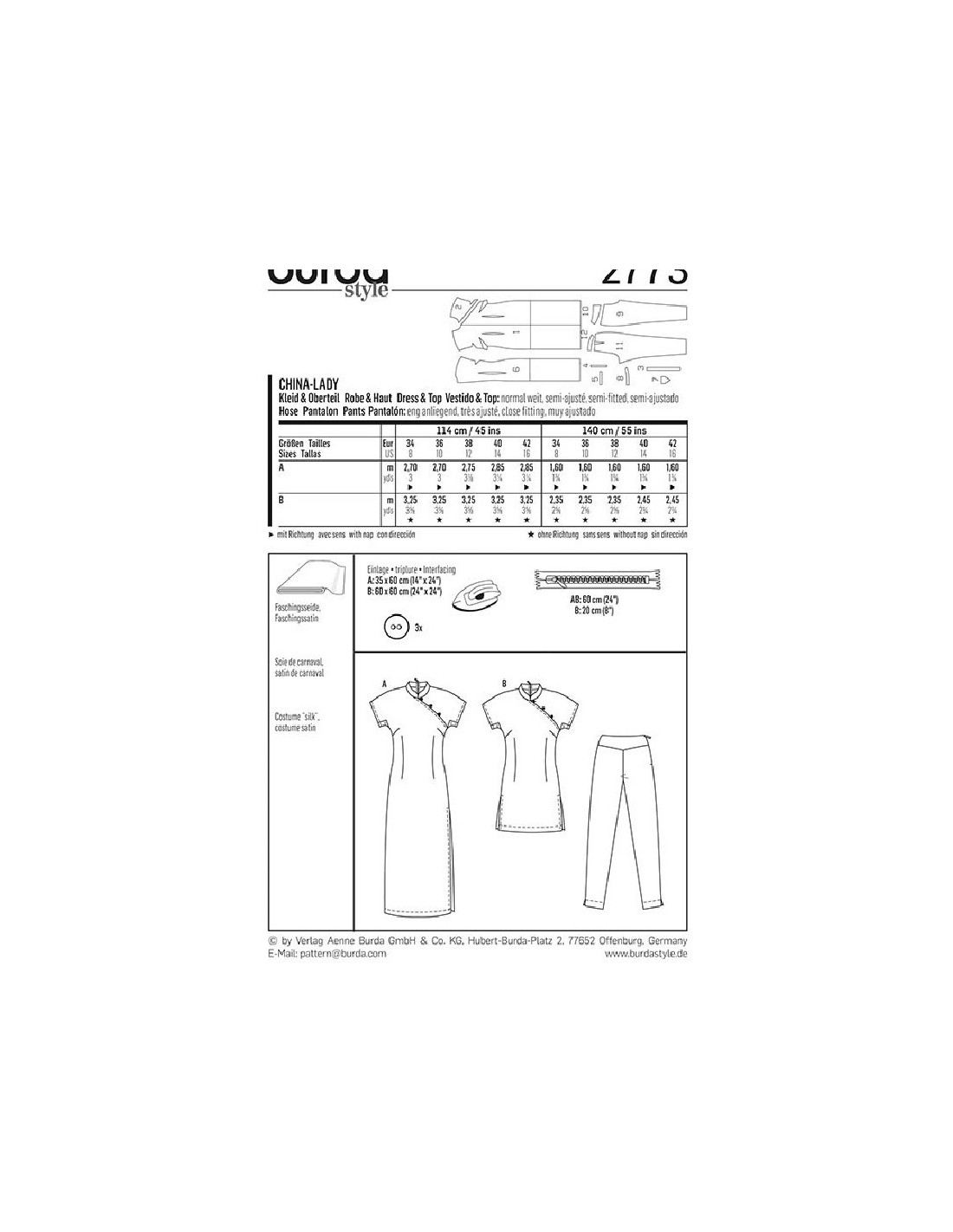 Patron Burda Carnaval 2773 - Déguisement Suzie Wong Femme