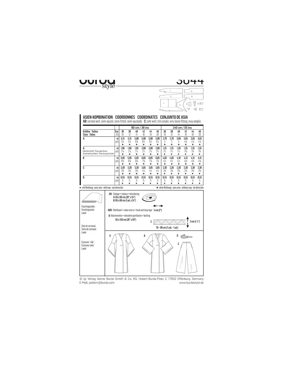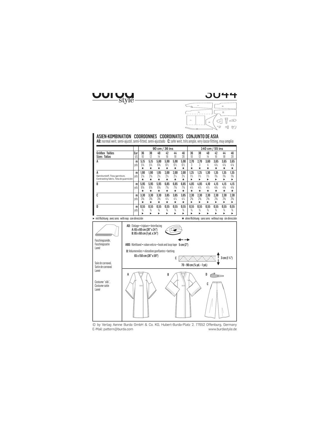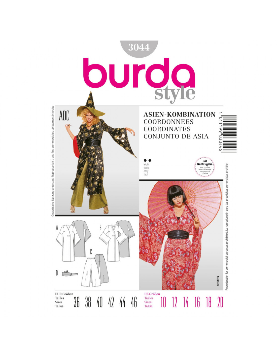 Patron Burda Carnaval 3044 - Déguisement asiatiques