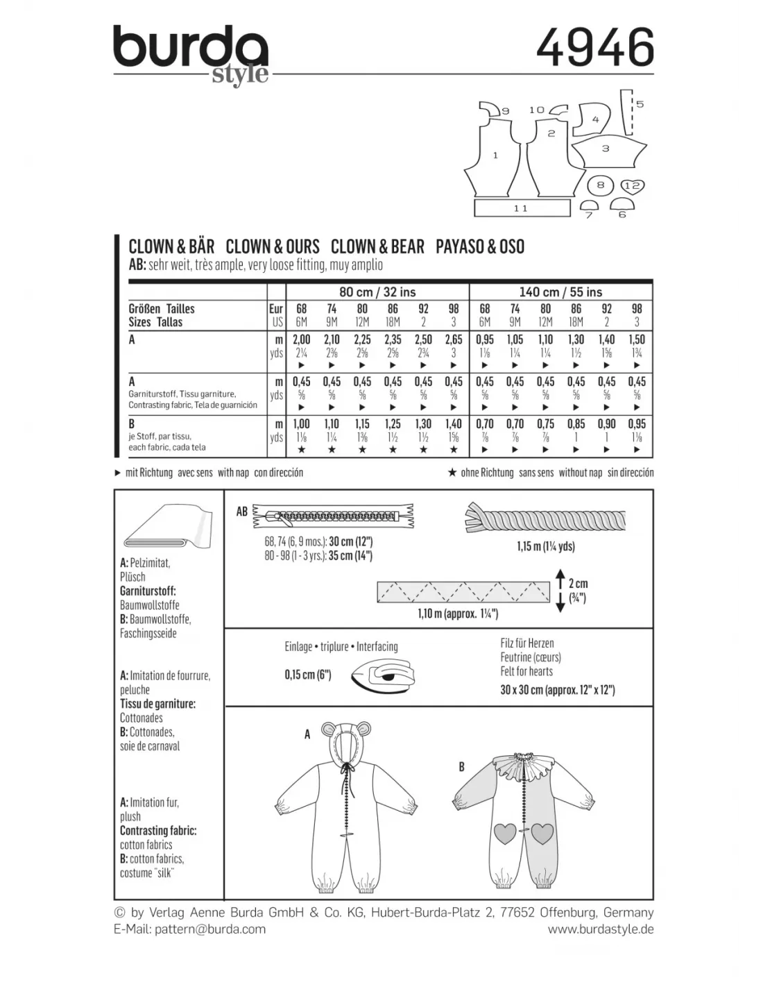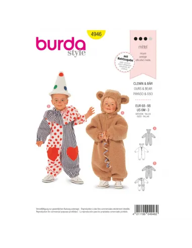 Patron Burda Carnaval 4946 - Déguisement Clown & ours bébé