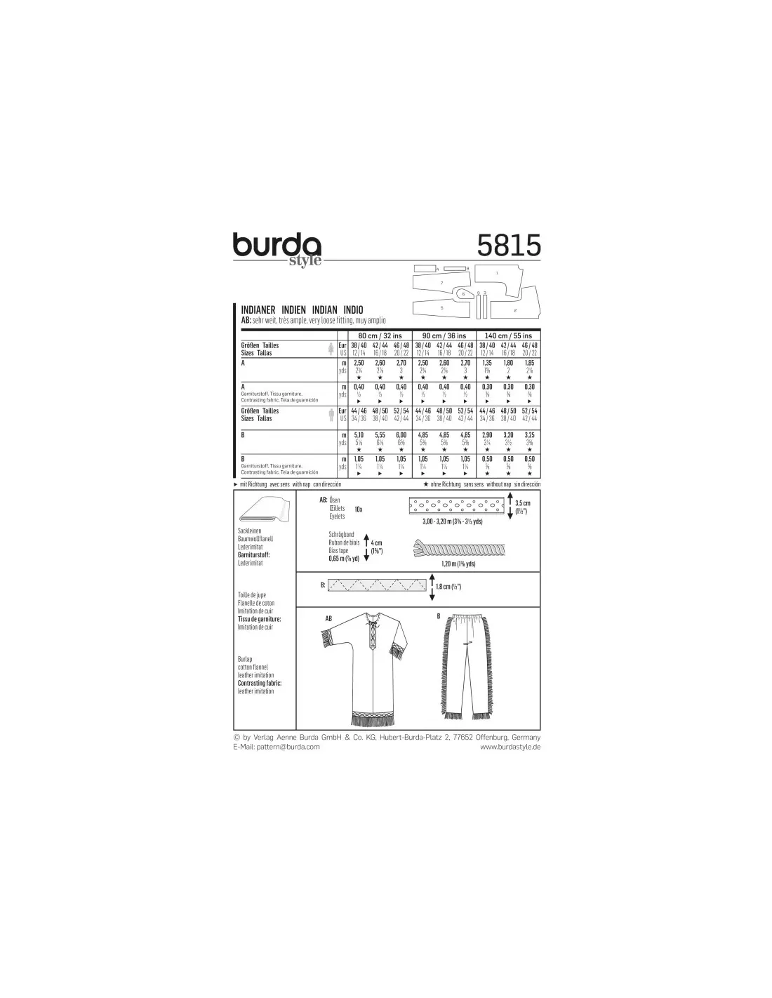 Patron Burda Carnaval 5815 - Déguisement indien Homme et Femme
