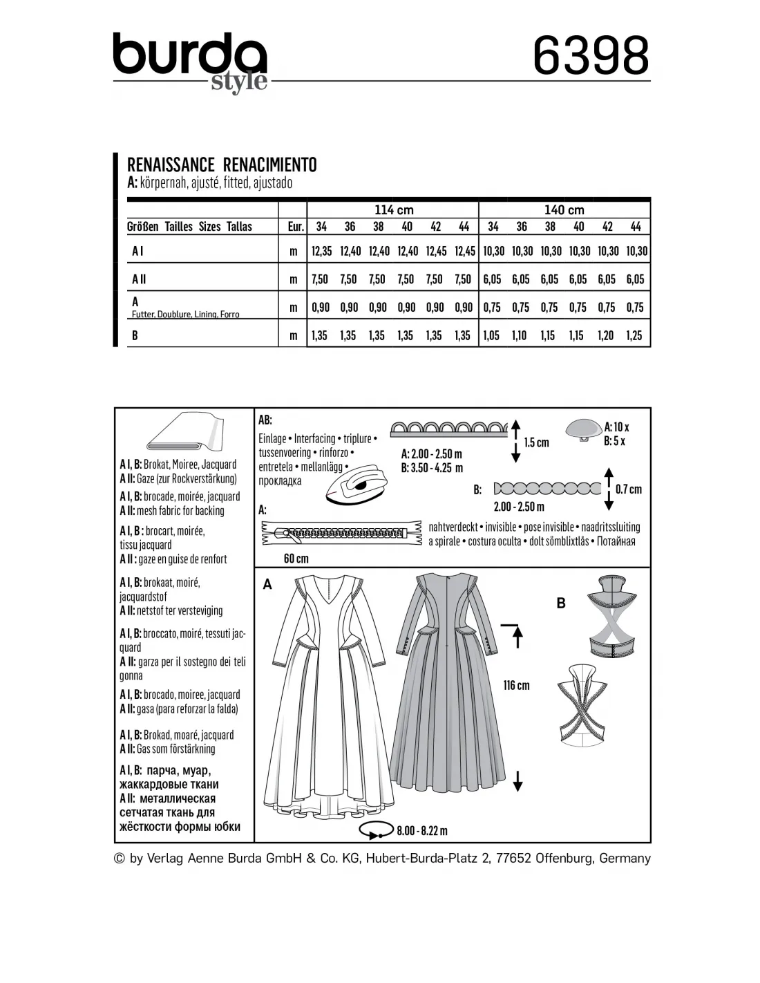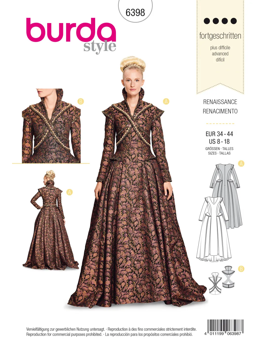 Patron Burda Carnaval 6398- Déguisement Historique Renaissance Femme