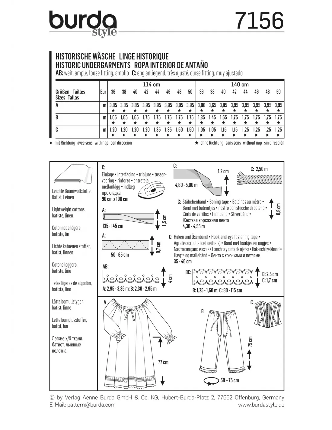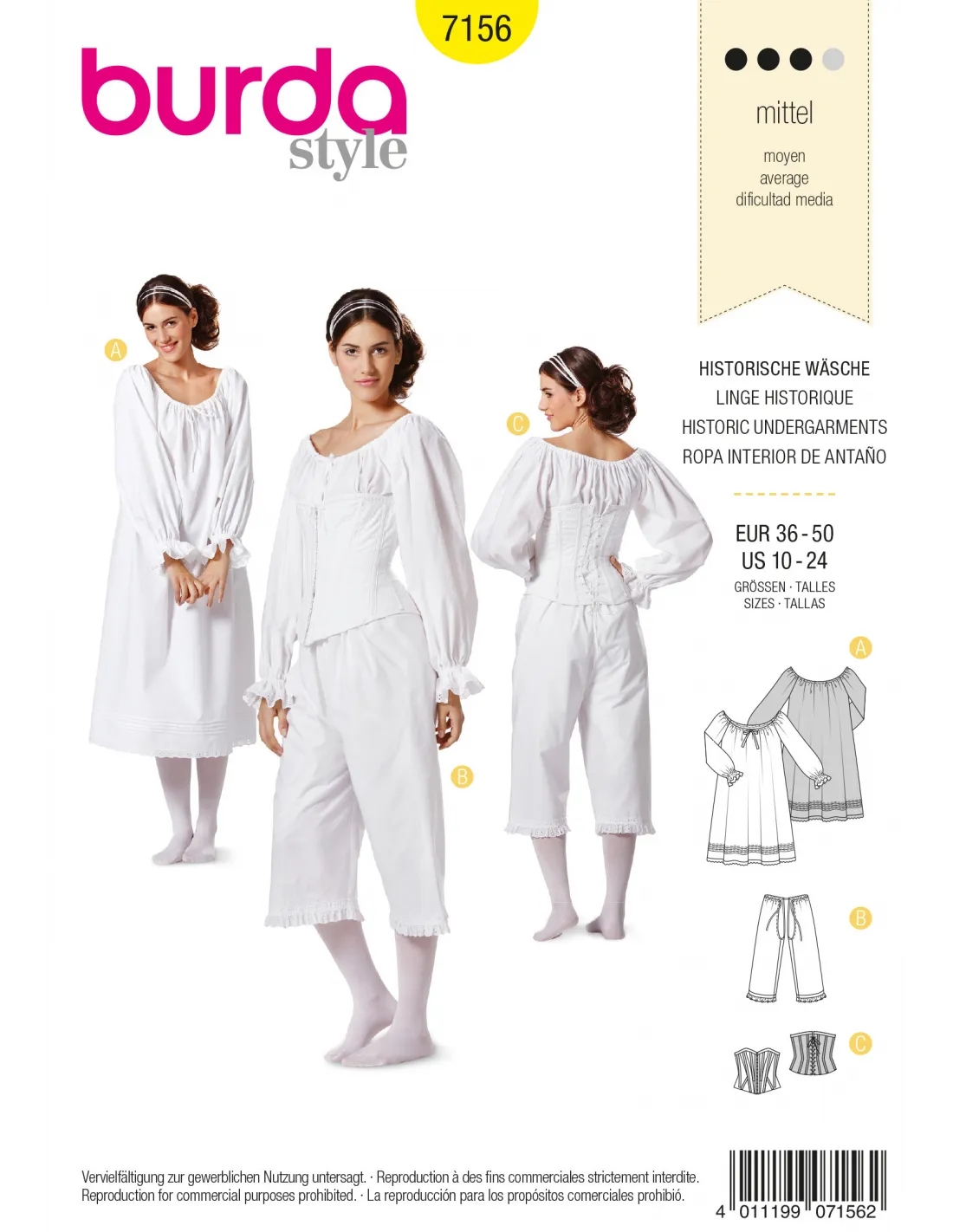 Patron Burda Carnaval 7156 - Déguisement Historique Sous - Vêtements Femme