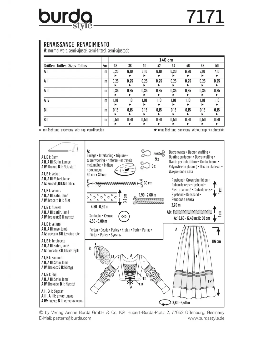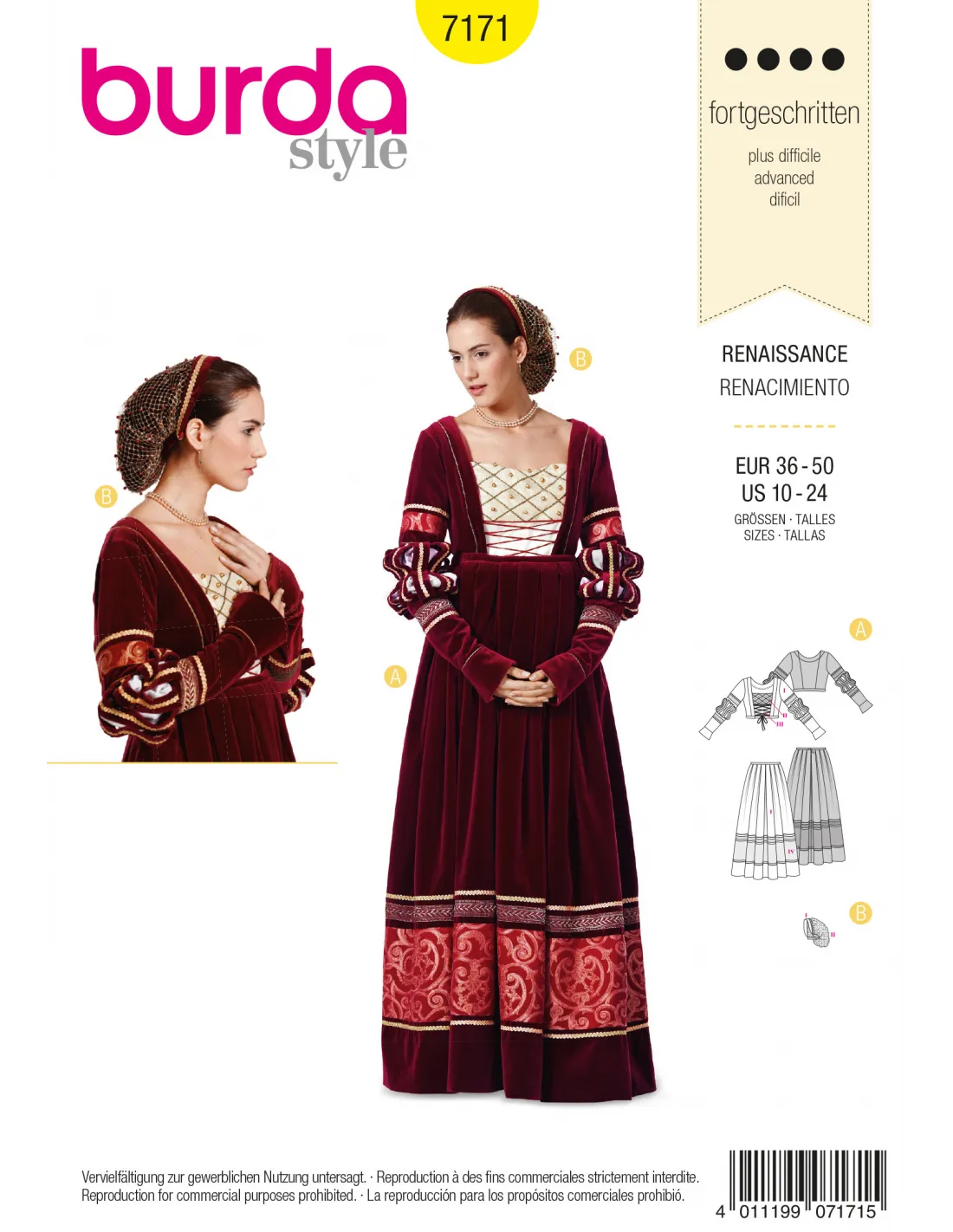 Patron Burda Carnaval 7171 - Déguisement Historique Robe Renaissance Femme