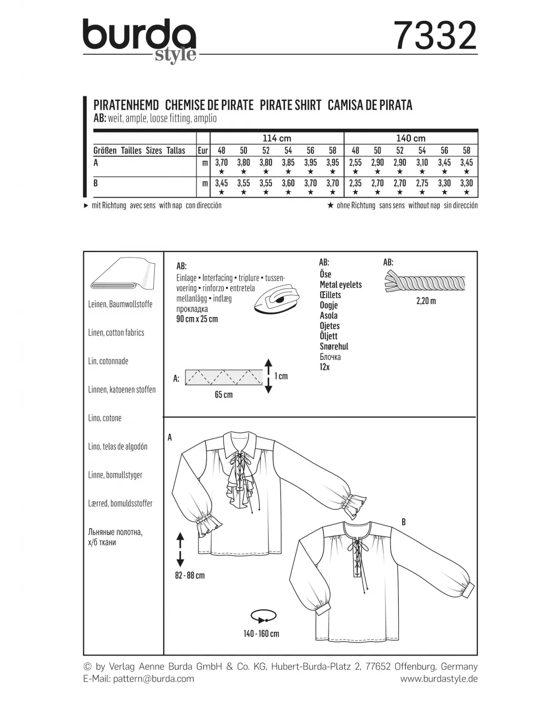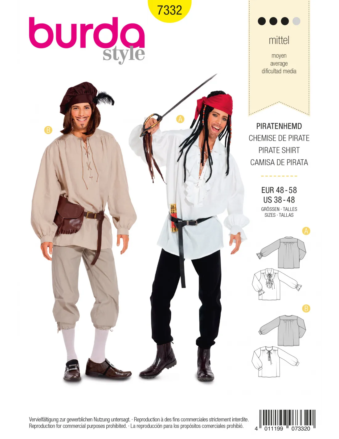 Patron Burda Carnaval 7332 - Déguisement Historique Chemise de pirate Homme