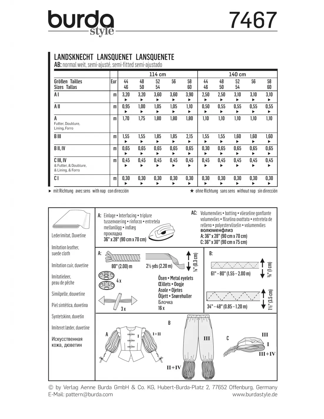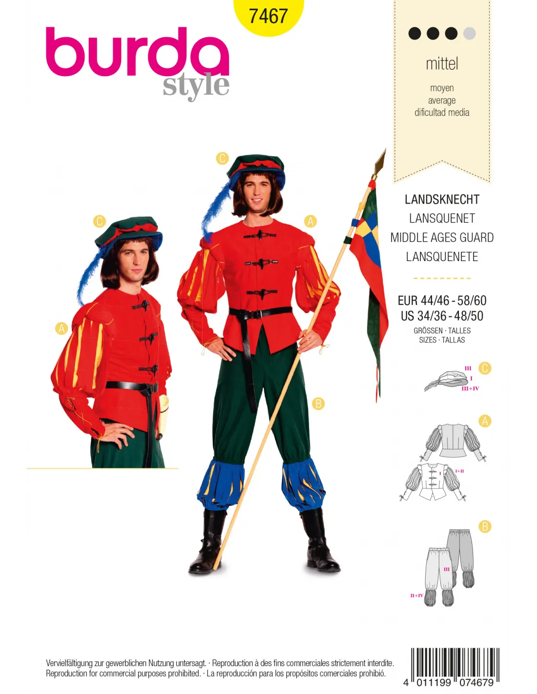Patron Burda Carnaval 7467 - Déguisement Historique Lansquenet Homme