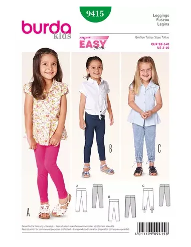 Fuseau fillesTailles: 98 - 140 cm (3 ans - 10 ans)Niveau de couture: facile. Tissus conseillés: uniquement jersey bi-élastiques ; B: tissu garniture: jersey filet. Langues incluses: Français, Deutsch, English, Español, Nederlands, Italiano, Svenska, Dansk, Pусский.
