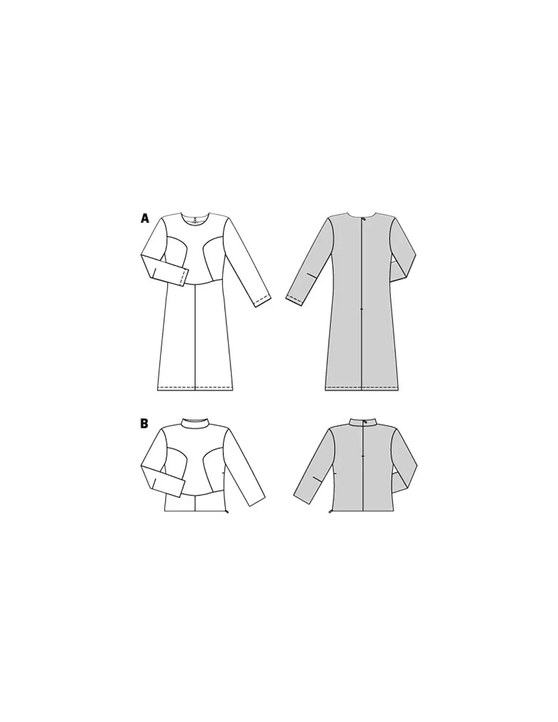 Cette robe et ce t-shirt se présentent à toi sous la forme de deux patrons polyvalents. La robe convainc par ses coutures pleines d'élan qui soulignent parfaitement la silhouette en haut, tandis que le tissu en jersey s'étire agréablement et augmente le confort. La partie jupe est discrètement évasée et assure une silhouette sixties. La chemise avec des coutures de séparation incurvées sur le devant est suffisamment élégante pour le bureau, mais détendue et confortable en même temps.