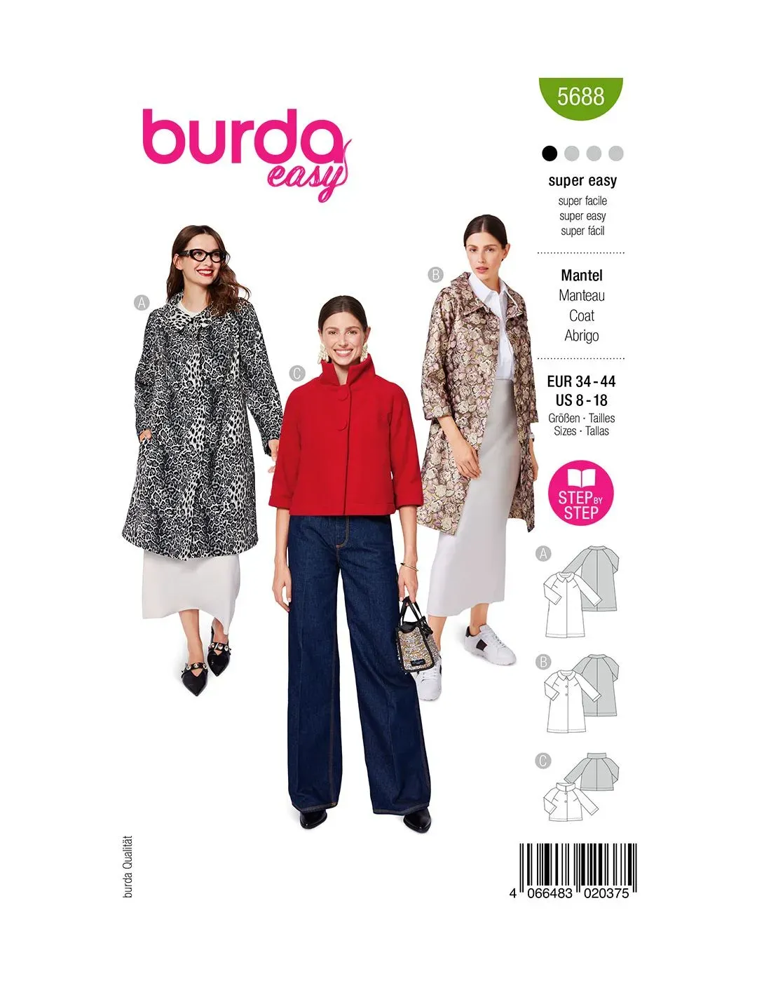 Ce patron de veste propose trois designs élégants au look rétro - idéal pour les débutants en couture. Le manteau longueur genou en jacquard léopard avec des fils brillants et un col bubon est à la fois élégant et sauvage. Le manteau sans doublure avec des boutons décoratifs et des boutons-pression est plus simple. La troisième variante de coupe est une veste courte et douillette en tissu de laine épais avec un col montant et des boutons décoratifs. Un must-have pour ton look d'automne.