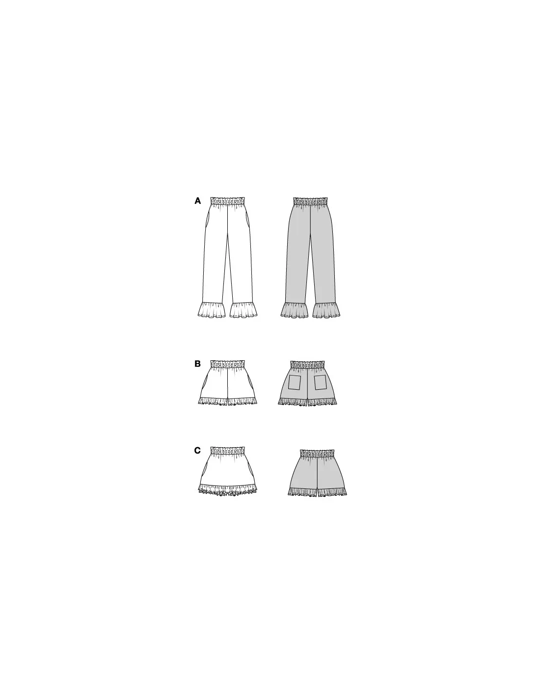 Ces bas estivaux se déclinent en trois variantes tendance – pantalon, short et skort – tous agrémentés de volants ludiques, de poches latérales pratiques et de tailles élastiques confortables. Que ce soit en tissu moucheté, en mousseline légère ou avec des détails charmants comme des bords dépassants et des ourlets à volants, chaque modèle est une pièce féminine et décontractée pour les journées chaudes, facile à assortir – de la plage à la ville.