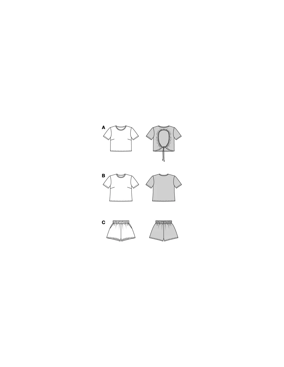 Des basiques d’été avec style : un T-shirt à col rond légèrement raccourci, minimaliste mais doté de détails raffinés comme une grande découpe au dos et un cordon froncé à l’arrière, associé à un short avec taille élastique et pinces sur les hanches pour un confort et une aération optimale. Ensemble, ces pièces forment un ensemble décontracté mais tendance pour les journées chaudes.