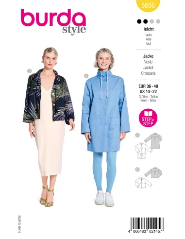 Apportez des accents particuliers à votre look avec ces variantes de parka ! Le premier modèle séduit par son col montant, sa patte de boutonnage dissimulée et ses grandes poches – une inspiration sportive facile à coudre. Le second transforme la coupe anorak en un chef-d’œuvre couture : coton à motifs audacieux, pressions fines, rubans de perles et pompons donnent une touche artistique au modèle. Parfait pour celles et ceux qui souhaitent allier chic sportif et détails élégants.