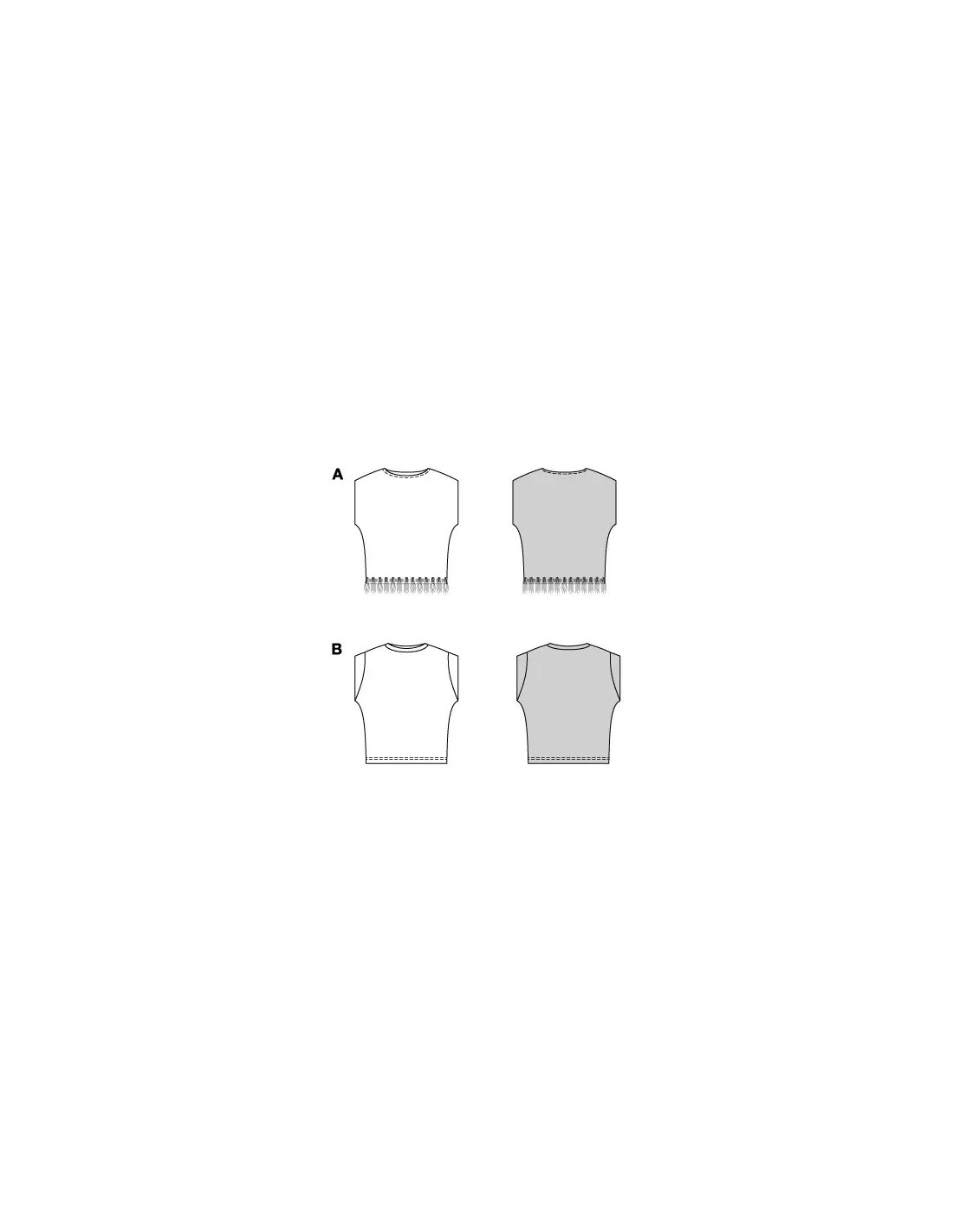 Des détails cool rencontrent des coupes sophistiquées : la première variante associe des manches volantées à des épaules tombantes et une forme structurée – une inspiration romantique interprétée de manière moderne. La seconde séduit par son tissu maille filet léger, son galon à franges, ses manches montées et son encolure bateau. Les détails astucieux et le mélange de matériaux font de chaque haut une pièce qui se démarque dans toutes les tenues.